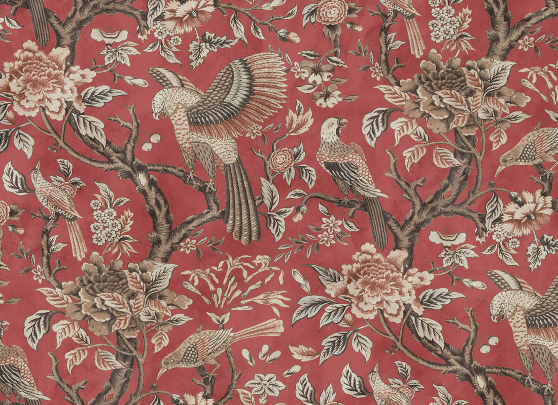 Mural Rebel Walls Poetic Wings in Bloom Red R20968 zachwyca intensywnością kolorów i ornamentalnym bogactwem. Drapieżne ptaki spoczywające wśród bujnych liści i kwiatów - tworzą dynamiczną, ale elegancką kompozycję pełną naturalnego wdzięku. Żywa, czerwona baza podkreśla ekspresyjny charakter wzoru, a odcienie brązu, szarości i różu nadają całości wielowymiarowego wyrazu. Delikatna faktura inspirowana tkaniną wzbogaca mural o subtelną strukturę, która doda ścianom głębi i miękkości. Starannie dopracowane detale uwydatniają realistyczne światłocienie i płynne przejścia tonalne, które wzmacniają wrażenie ruchu i trójwymiarowości. Mural Rebel Walls R20968 Poetic Wings in Bloom Red doskonale odnajdzie się w wyrazistych, artystycznych wnętrzach, gdzie stanie się centralnym elementem aranżacji. Jego nasycona paleta barw wprowadzi do przestrzeni energię, wytworność i dekoracyjny rytm, tworząc atmosferę pełną elegancji i siły natury.