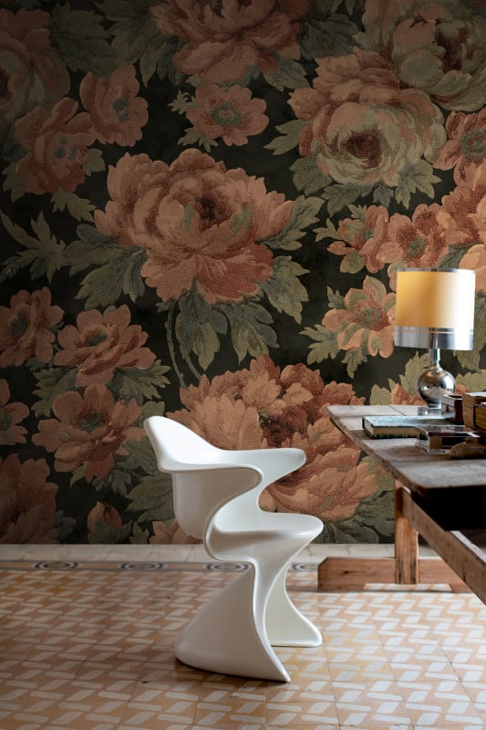 Mural Rebel Walls Poetic Eternal Blossoms Black R21010 zaskakuje kontrastowym połączeniem bogatego wzoru kwiatowego z głębokim, ciemnym tłem. Dzięki takiemu zestawieniu róże w odcieniach przygaszonego różu i zieleni nabierają intensywności, a kropkowana tekstura dodaje dekoracji wyrazistości i głębi. Dekoracja wniesie do wnętrza klasyczny szyk i artystyczny charakter. Mural Rebel Walls R21010 Poetic Eternal Blossoms Black doskonale odnajdzie się w przestrzeniach inspirowanych stylem vintage, glamour oraz eklektycznymi aranżacjami. Pasuje do mebli z ciemnego drewna, złotych akcentów i welurowych tkanin, które podkreślą jego dekoracyjny charakter. W sypialni stworzy efekt przytulnego, luksusowego azylu, w salonie stanie się wyrazistą ozdobą, a jadalni doda klasy i wyrafinowanego stylu. To propozycja dla osób, które cenią wyraziste wzory o historycznym rodowodzie w nowoczesnym, odważnym wydaniu.