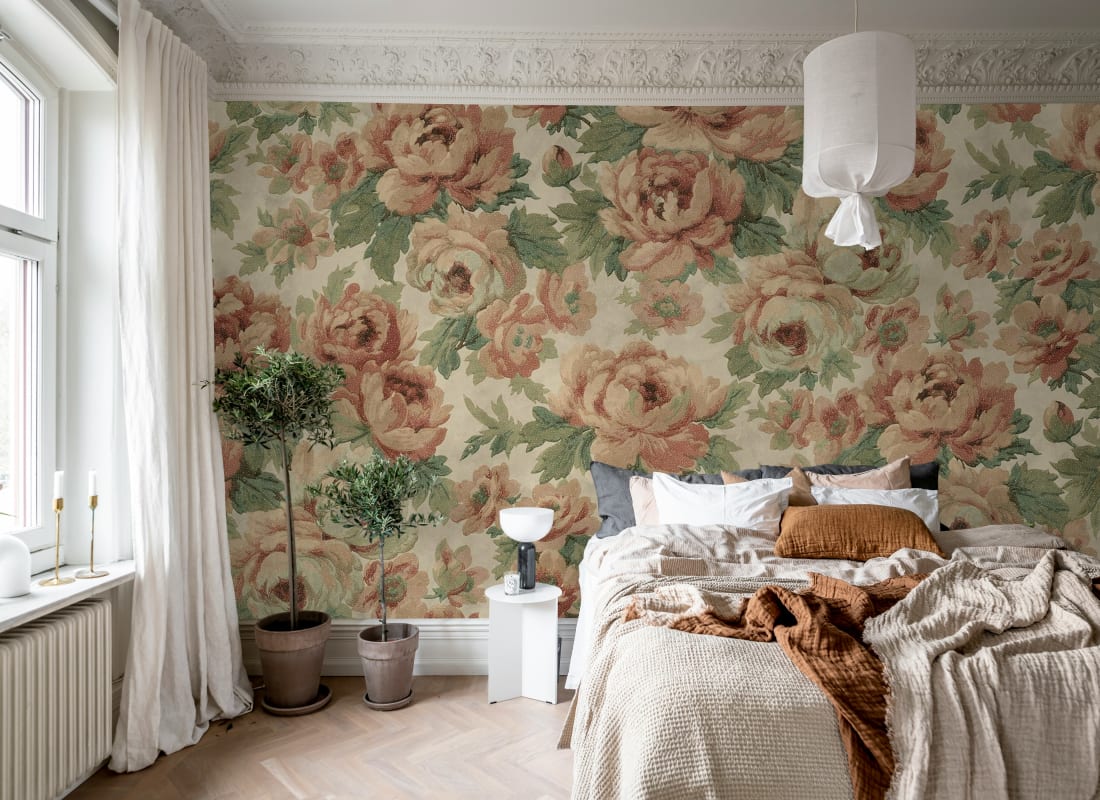 Mural Rebel Walls Poetic Eternal Blossoms Pink R21011 emanuje romantycznym wdziękiem i artystycznym charakterem inspirowanym dawnymi tkaninami dekoracyjnymi. Bujne róże w odcieniach różu i zieleni rozkwitają na subtelnym tle - wspólnie tworzą efekt malarskiej kompozycji. Kropkowana tekstura dodaje dekoracji głębi i podkreśla unikalny, klasyczny charakter wzoru. Taki motyw wniesie do wnętrza ciepło i ponadczasowy urok. Mural Rebel Walls Poetic Eternal Blossoms Pink R21011 idealnie pasuje do wnętrz inspirowanych klasyką, stylem vintage czy modern classic. Świetnie wygląda w połączeniu z drewnianymi meblami, dekoracyjnymi lustrami i delikatnymi tkaninami, które dodadzą mu lekkości. W sypialni stworzy przytulny nastrój, w jadalni podkreśli wyrafinowany klimat przestrzeni, a salonowi doda dekoracyjnego wyrazu. To propozycja dla osób, które cenią wzory o bogatej historii i chcą nadać przestrzeni niepowtarzalnego charakteru.