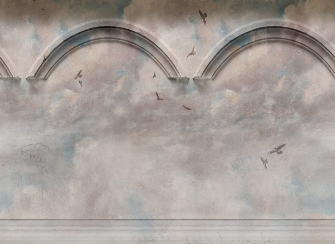 Rebel Walls R21015 Poetic Heavenly Arches Gray - mural w pejzaż nieba i łuki