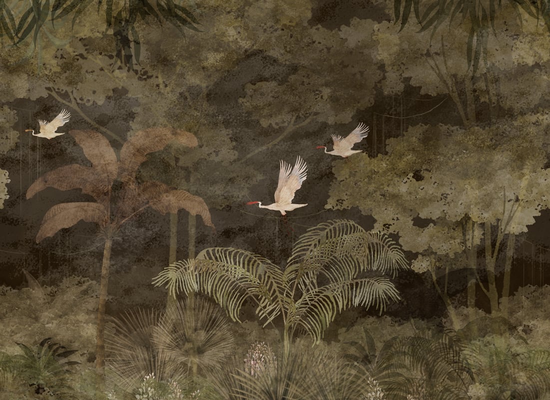 Mural Rebel Walls Eden Escape Exotic Eden Night Vintage R21461 to wyjątkowa kompozycja inspirowana tajemnicą tropikalnej nocy. Na tle gęstej dżungli unoszą się z gracją ptaki, a liście i korony drzew tworzą miękką, akwarelową mozaikę pełną głębi i ruchu. Ten mural wprowadza do wnętrza atmosferę spokoju, zanurzenia w naturze i delikatnej melancholii, jakby uchwycono moment ciszy po zachodzie słońca. Każdy szczegół, od rozmytych konturów, po subtelne przejścia barw, odzwierciedla kunszt ręcznego malarstwa. Doskonale sprawdza się w aranżacjach urban jungle, gdzie podkreśla egzotyczny charakter roślin, oraz w stylu boho, którymem nadaje miękkości i organicznego rytmu. W zestawieniu z naturalnymi tkaninami, drewnem i światłem o ciepłej tonacji tworzy przytulną, ale zarazem intrygującą przestrzeń. Mural Rebel Walls R21461 Eden Escape Exotic Eden Night Vintage dodaje wnętrzu głębi, harmonii i szlachetnej tajemniczości inspirowanej naturą.