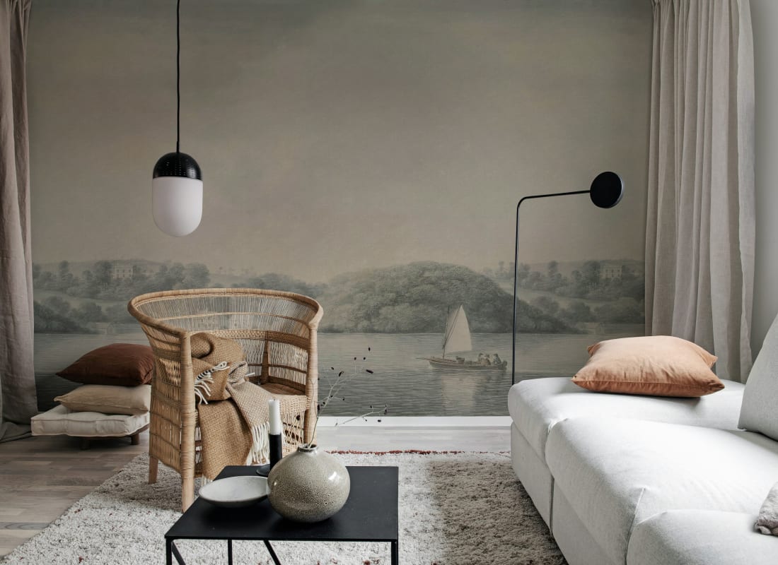 Mural Rebel Walls Pops Weekend Sail Soft R21544 przedstawia spokojny krajobraz jeziora z żaglówką dryfującą po delikatnie zaznaczonej tafli wody. Kompozycja utrzymana w jasnych, rozbielonych tonach i miękkich przejściach kolorystycznych przypomina akwarelową ilustrację, co nadaje dekoracji lekkości i subtelności. Efekt rozmycia horyzontu buduje wrażenie przestrzeni i działa uspokajająco na odbiorcę. Model doskonale pasuje do wnętrz o stonowanej estetyce – w szczególności do sypialni, salonów oraz miejsc przeznaczonych do relaksu. Mural Rebel Walls R21544 Pops Weekend Sail Soft wprowadzi do przestrzeni atmosferę ciszy i elegancji, wzmacniając wrażenie komfortu. To dekoracja, która dobrze komponuje się z jasnym drewnem, lnianymi tkaninami i oszczędnym wyposażeniem, pozwalając tworzyć aranżacje o ponadczasowym, harmonijnym charakterze.
