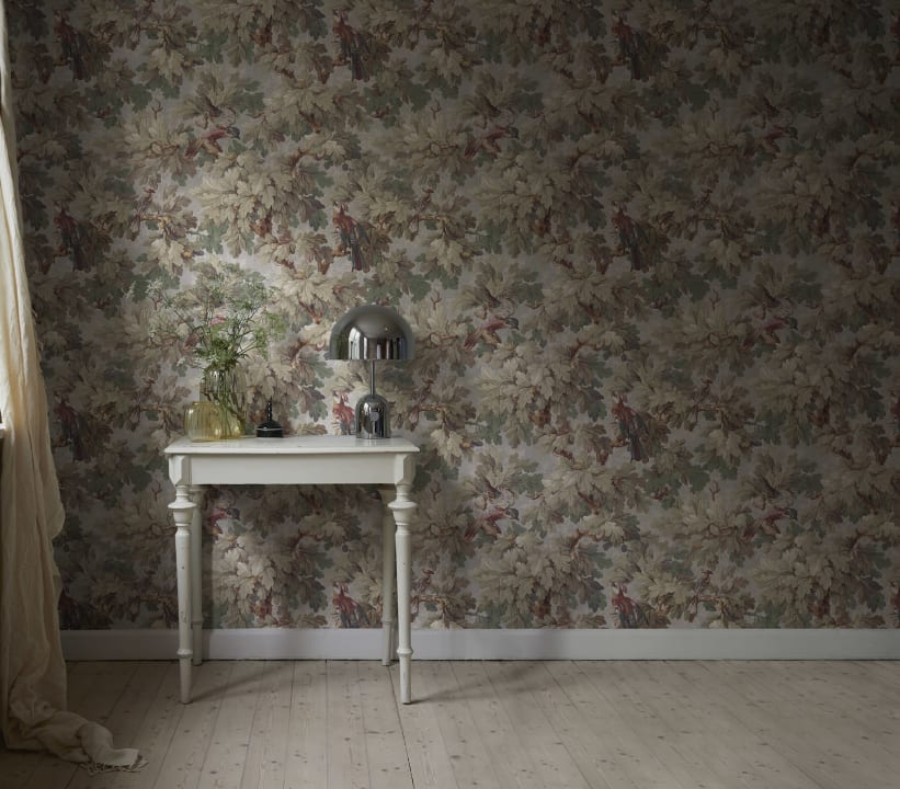 Mural Sandberg S10275 Le Village Benjamin Sage Green został zainspirowany starym projektem tkaniny. Główną rolę odgrywają tu liście dębu, będące synonimem logo marki. Rytmiczne skręcanie gałęzi ozdobionych egzotycznymi ptakami wnosi radosną nutę do projektu, który z pewnością rozświetli każde wnętrze. Mural Sandberg Le Village Benjamin S10275 Sage Green występuje w trzech wersjach kolorystycznych.