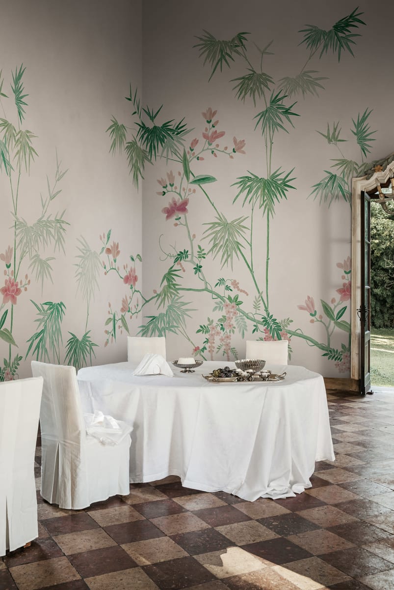Mural Sandberg S10420 Chinoiserie Garden Bamboo Grove Green to świat, gdzie nowoczesność łączy się z klasycznym pięknem. Wzór tej dekoracji, inspirowany fragmentami przepięknej XIX-wiecznej Chinoiserie z Kantonu, przedstawia zielony gaj bambusowy, wprowadzając w przestrzeń uczucie spokoju i wyłączności. Delikatna, beżowa baza oraz liście w różnych odcieniach zieleni tworzą naturalną i odprężającą atmosferę, idealną do wnętrz szukających połączenia elegancji i spokoju natury.