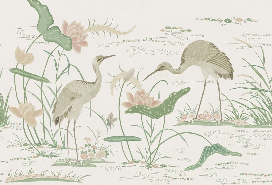 Mural Sandberg S10550 Chinoiserie Garden Seabirds Green przenosi nas do idyllicznego świata ptaków wodnych, elegancko poruszających się między kwiatami lotosu i trzcinami. Inspiracja wyjątkowym chińskim jedwabiem z XIX wieku znajduje odzwierciedlenie w delikatnym wzorze, gdzie na tle w ciepłych tonach wyróżniają się pastelowe barwy zieleni, kwiatów i ptaków. Mural Sandberg Chinoiserie Garden Seabirds S10550 Green stanowi synonim spokoju i subtelności, idealnie komponując się z wnętrzami, gdzie dominuje harmonia i bliskość natury.