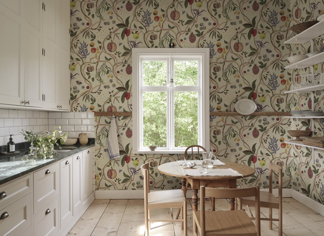 Mural Sandberg S10579 Herbarium Tree Of Life Multi pulsuje dekoracyjną energią. Ręcznie malowane drzewo owocowe w stylistyce botanicznej fantazji wyrosło na tle ciepłej, beżowej bazy, przynosząc harmonię koloru i formy. Inspirowany XVIII-wiecznym dziełem Plantae Selectae, wzór przekształca klasyczne motywy roślinne w pełne ekspresji przedstawienie życia roślin. Ornamentyka owoców o organicznych kształtach przeplata się z wijącymi się gałęziami, tworząc dynamiczną, lecz wyważoną kompozycję. Wielobarwna paleta, oparta na odcieniach ochry, cynobru, zieleni i błękitu, nadaje przestrzeni wizualną lekkość, ale też głębię, która przyciąga wzrok i zatrzymuje uwagę. Mural Sandberg Herbarium Tree Of Life S10579 Multi wprowadza do wnętrza nie tylko dekoracyjny punkt ciężkości, lecz również szczyptę ilustracyjnej fantazji.