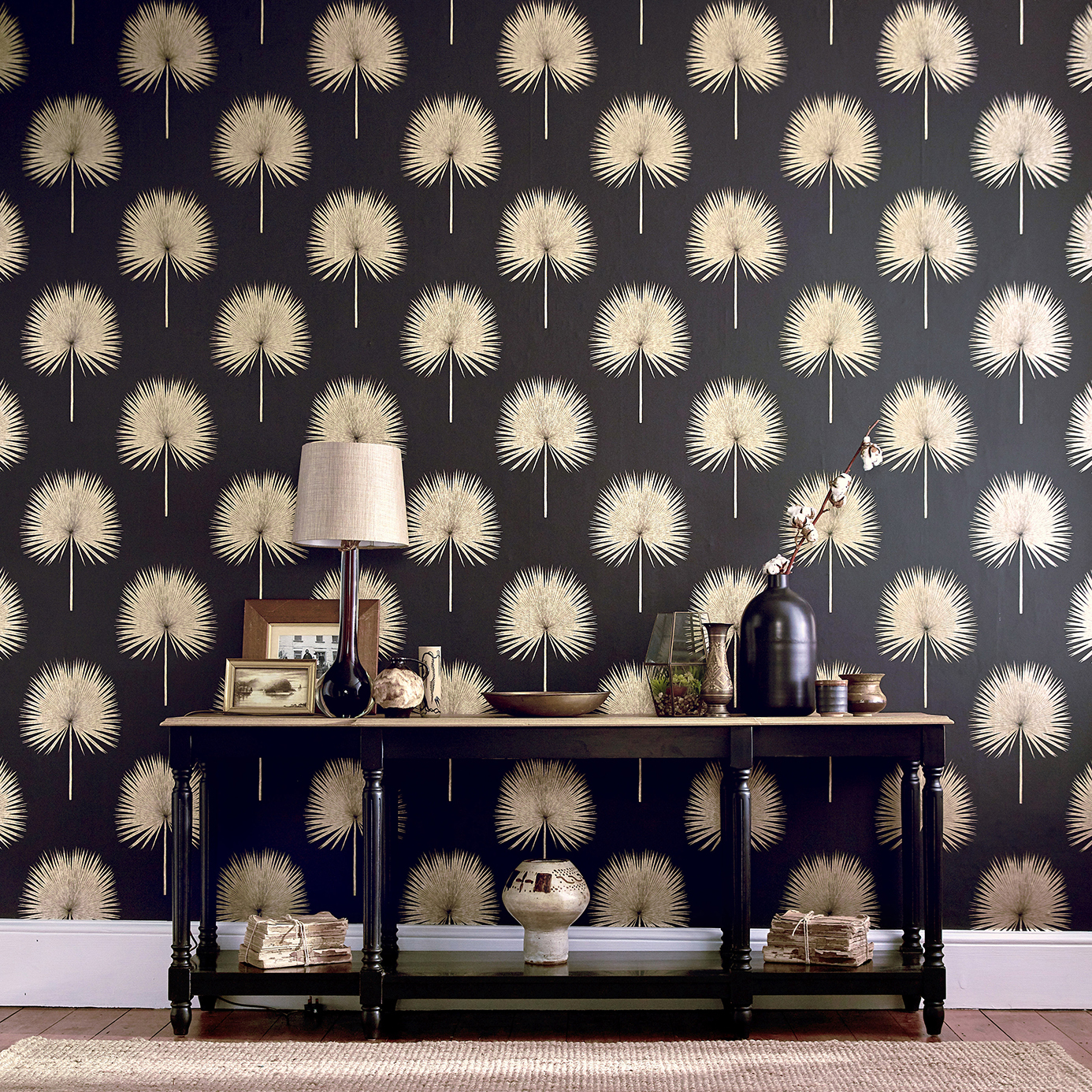 Tapeta Sanderson Glasshouse Fan Palm DGLW216639 Charcoal/Gold prezentuje stylizowane liście palmy wachlarzowej ułożone w równomiernym, graficznym rytmie, który nadaje ścianie elegancką, uporządkowaną strukturę. Tapeta w liście palm eksponuje precyzyjne kontury oraz drobne załamania linii, a metaliczne akcenty podkreślają wachlarzowy kształt liści i wprowadzają subtelną grę światła. Matowe tło równoważy połysk detali, dzięki czemu motyw zachowuje klarowność i wyważoną dekoracyjność nawet na dużej powierzchni. Ten rodzaj wzoru wzmacnia architektoniczną rolę ściany i sprzyja projektowaniu przestrzeni o eleganckim, harmonijnym charakterze. Stylistyki modern classic oraz tropical modern wykorzystują ten motyw do podkreślenia proporcji ściany i nadania jej dekoracyjnej dyscypliny. Tapeta Sanderson DGLW216639 Glasshouse Fan Palm Charcoal/Gold zapewnia wykończenie o wysokiej jakości i ponadczasowym, dekoracyjnym wyrazie.