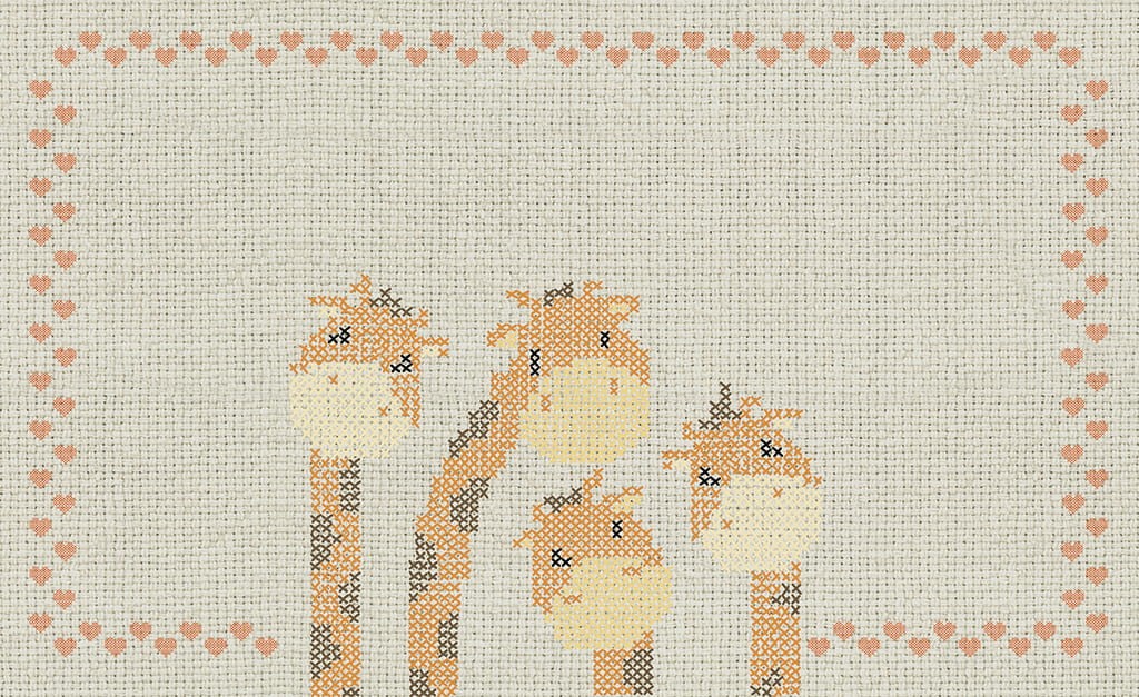Tapeta Skinwall SUITE CROSS STITCH GIRAFFE 767 to dekoracja ścienna stworzona przez studio Conti Marchetti Studio. Ta nowoczesna ozdoba przedstawia żyrafią rodzinkę, która wygląda jakby była ręcznie wyszywana na płótnie. Wzór CROSS STITCH GIRAFFE 767 z kolekcji tapet Skinwall SUITE to ciekawa propozycja do pokoju Twojego malucha. Pozwoli pobudzić jego bujną wyobraźnię oraz namaluje szczęśliwy uśmiech na jego dziecięcej twarzy.