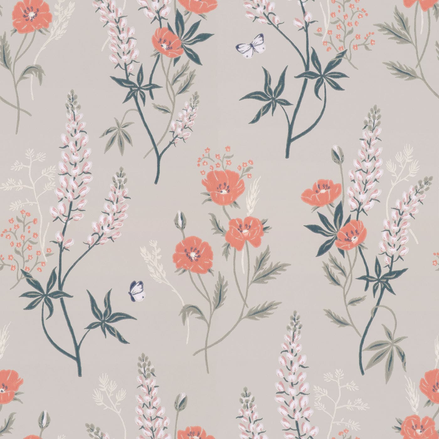Tapeta Sandberg Villa Dalaro Emma Grey 427-29 przedstawia kwitnącą, letnia łąkę z wysokimi łubinami, wrzosami i makami. Dekoracja ścienna, której głównym elementem są kwiaty, wprowadzi niezwykle modny efekt do pomieszczenia. Ponadto kolorystyka różu, zieleni i czerwieni na szarym tle w tapecie Sandberg Villa Dalaro Emma Grey 427-29 dodaje jej subtelnego, eleganckiego sznytu.