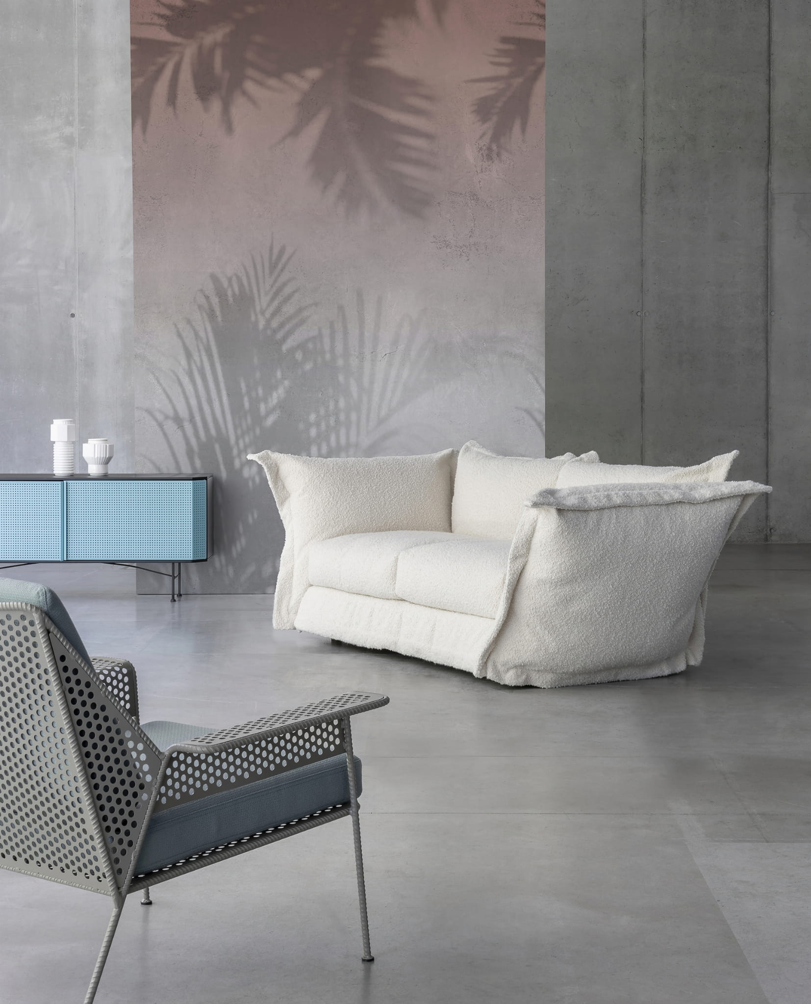 Tapeta Wall & Deco Diesel Shadow Concrete ED_DSSC2101 została zainspirowana zaskakującą i subtelną przyrodą. Projekt przedstawia cień rzucany na betonową ścianę przez egzotyczne liście. Motyw wprowadzi do pomieszczenia relaks i spokój w towarzystwie romantyzmu. Wzór Shadow Concrete ED_DSSC2101 z kolekcji tapet Wall & Deco Diesel doskonale ozdobi ściany nowoczesnych, minimalistycznych i eklektycznych wnętrz, będąc imponującą dekoracją na akcentowej ścianie. Model dostępny jest w trzech wersjach kolorystycznych.
