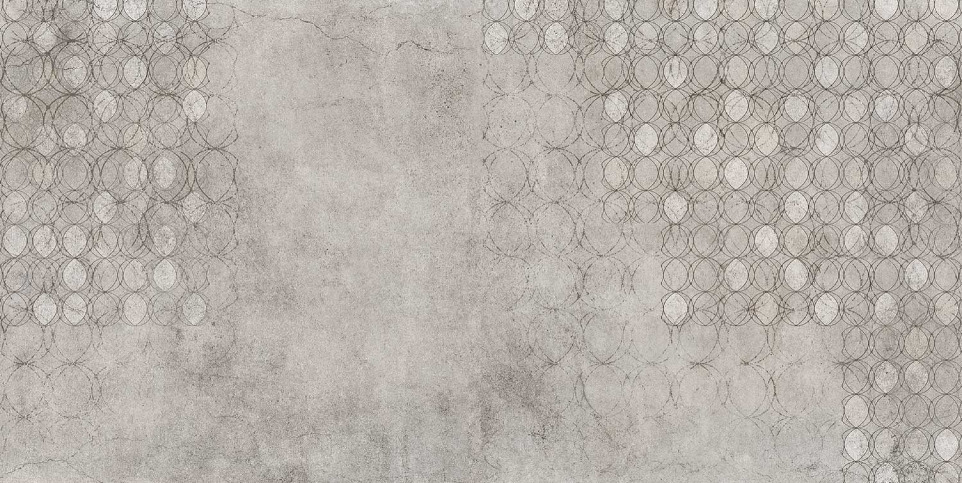 Tecnografica 53838-3 Material Mood O Anthracite - mural w okręgi na surowym tle