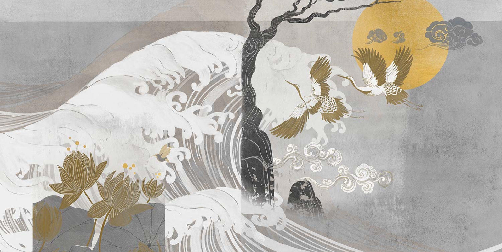 Tecnografica 71699-2 Japandi Nami Ice - mural w żurawie i fale
