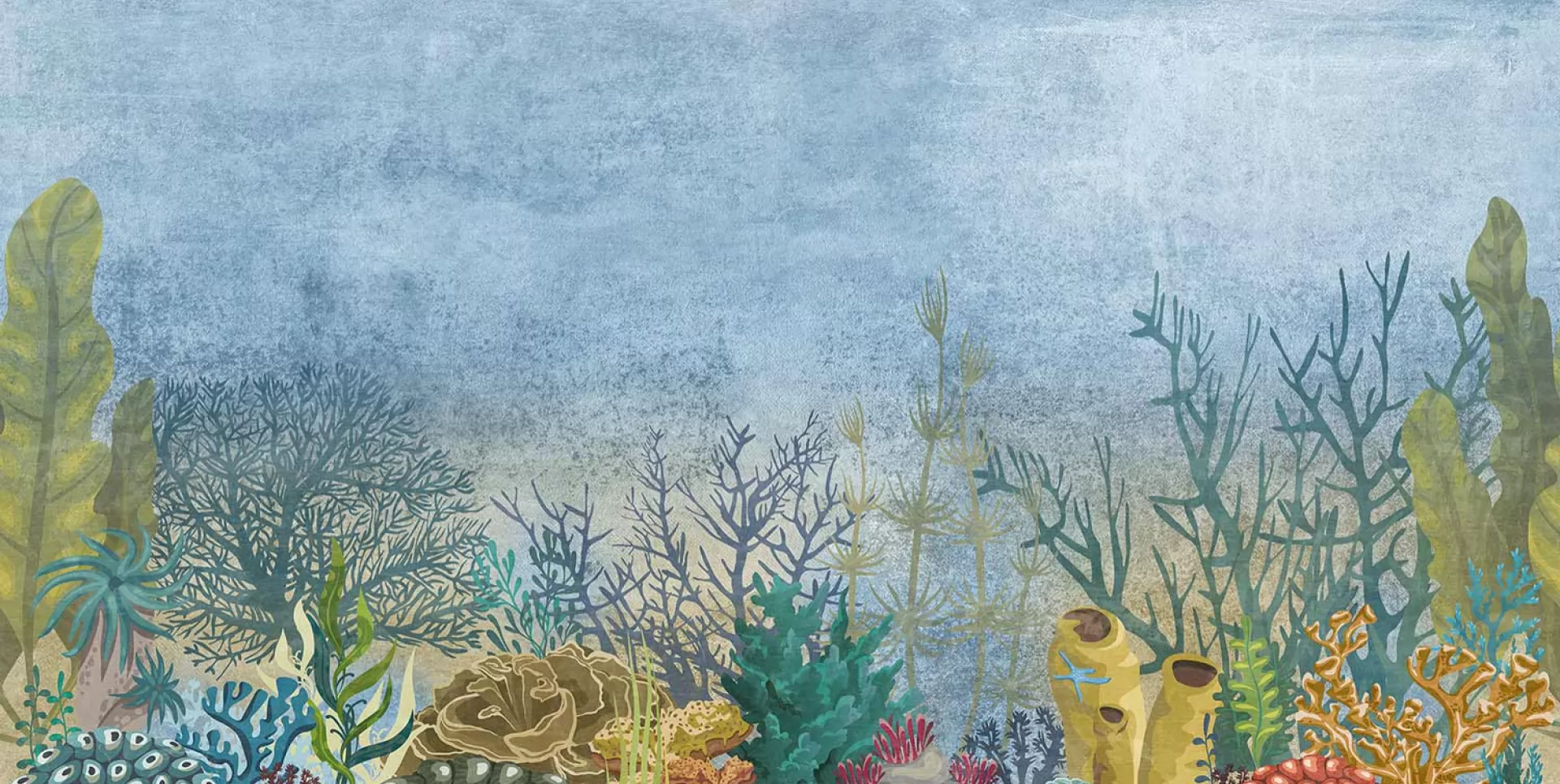 Mural Tecnografica Kids Marina Sleeping Time 75613-2 przedstawia ilustracyjny podwodny krajobraz wypełniony koralowcami, roślinnością i delikatnie zarysowanym morskim tłem. Kompozycja została opracowana w sposób uporządkowany i harmonijny, dzięki czemu wprowadza do dziecięcego wnętrza spokój i poczucie bezpieczeństwa. Brak zwierzęcych postaci pozwala skupić uwagę na strukturze, kształtach roślin i grze form, co pobudza wyobraźnię i zachęca do tworzenia własnych historii. Mural dobrze sprawdza się w strefie wypoczynku, snu lub zabawy, stanowiąc estetyczne i neutralne tło. Idealnie komponuje się z jasnym wyposażeniem, prostymi meblami i dodatkami inspirowanymi naturą. Mural Tecnografica 75613-2 Kids Marina Sleeping Time to dekoracja ścienna, która buduje narracyjne, spokojne otoczenie, wspierające rozwój dziecka.