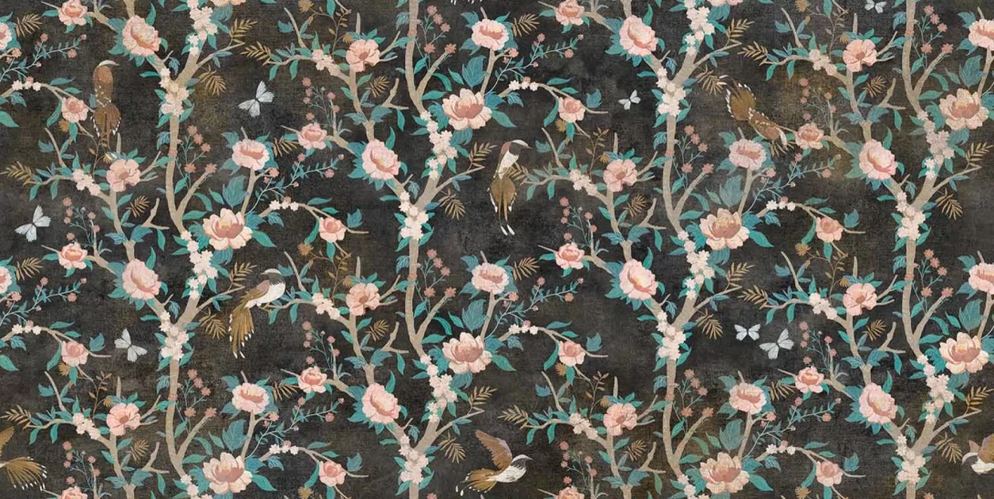 Tecnografica 76880-3 Old London Sonet Nuit - mural w ptaki, kwiaty i liście