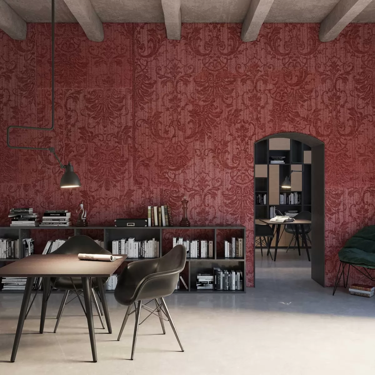 Mural Tecnografica Fabrics King’s Room Red 77748-3 przedstawia roślinny ornament z wyraźnym efektem tkaniny, który nadaje ścianie elegancji i dekoracyjnej głębi. Wzór w dużej skali działa jak centralny punkt aranżacji, porządkując przestrzeń i wzmacniając charakter wnętrza. Dekoracja dobrze komponuje się z drewnem, metalem i prostymi formami mebli, dzięki czemu tworzy harmonijne tło bez potrzeby dodatkowych ozdób. Mural Tecnografica 77748-3 Fabrics King’s Room Red podkreśla klasyczny styl aranżacji i wprowadza do niej wyrazisty, uporządkowany akcent.