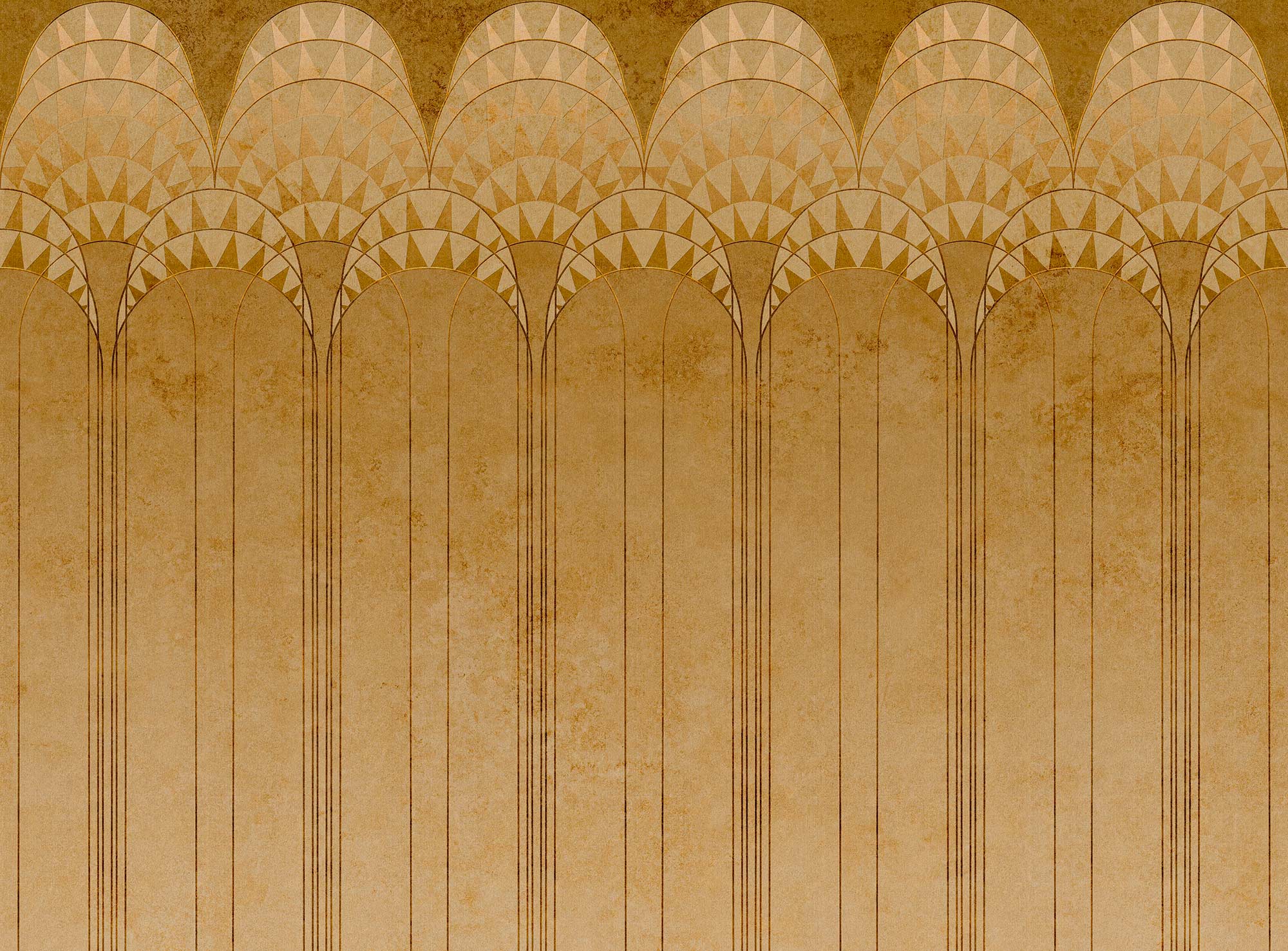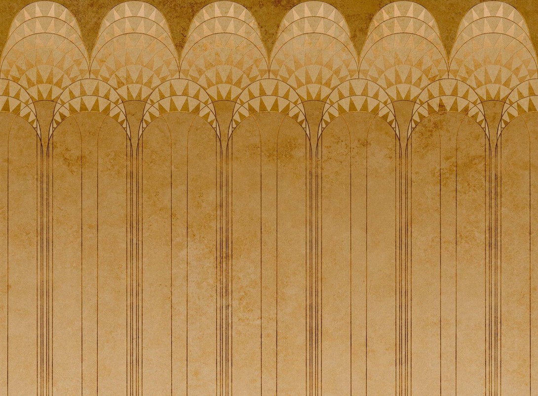Mural Tecnografica Metal Lexington Gold 82784-1 inspirowany jest estetyką art déco i architektonicznymi motywami z lat 20. XX wieku. Wzór opiera się na pionowych pasach i rytmicznie rozmieszczonych łukach z geometrycznymi elementami. Całość tworzy uporządkowaną, elegancką kompozycję przywodzącą na myśl monumentalne wnętrza metropolii. Mural Tecnografica 82784-1 Metal Lexington Gold doskonale sprawdzi się w przestrzeniach reprezentacyjnych – lobby, restauracjach czy salonach, w których podkreśli luksusowy i dopracowany charakter aranżacji. Geometryczny układ wzoru nadaje ścianie rytmu i symetrii, wspierając wizualny porządek we wnętrzu.