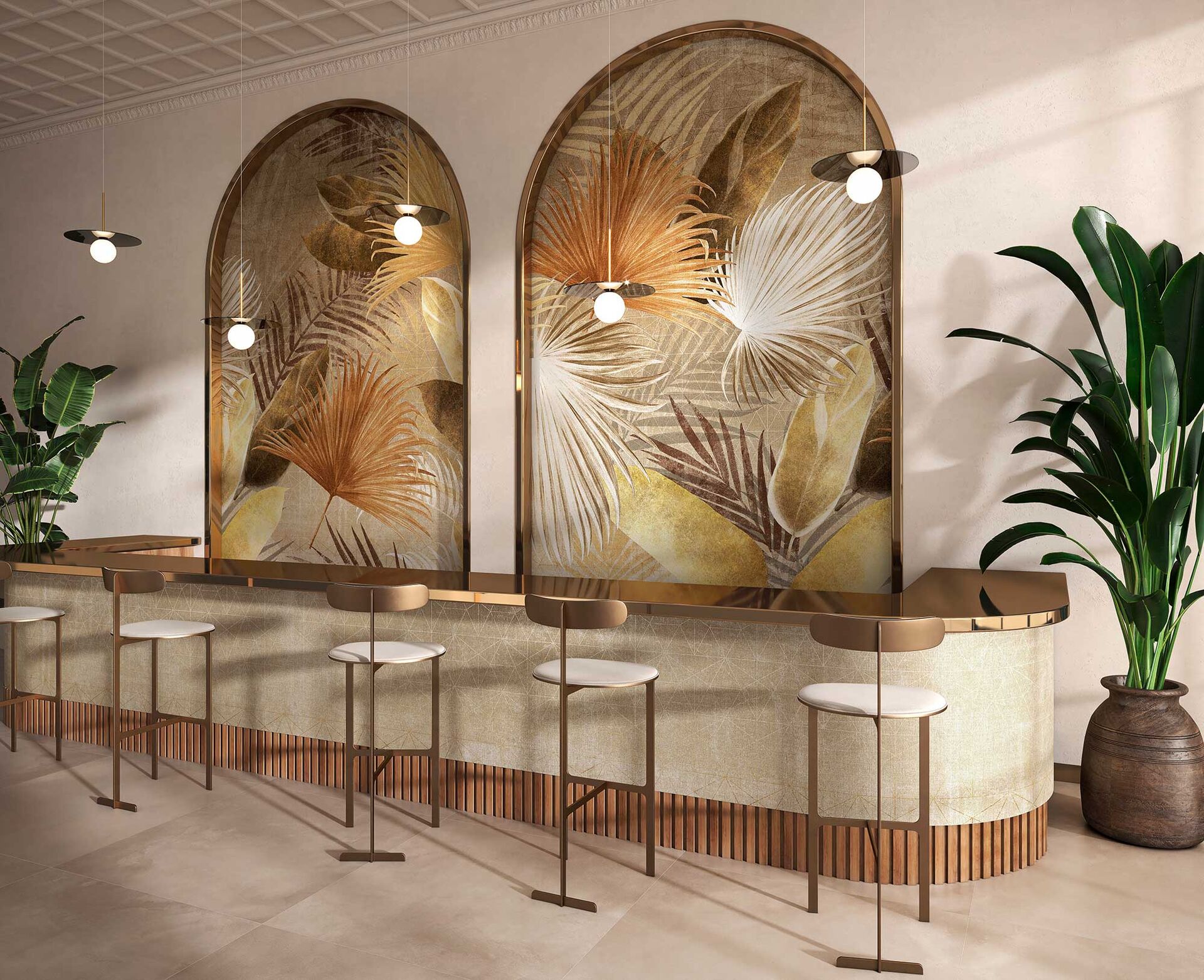 Mural Tecnografica Metal El Dorado Blue A 82854-3A prezentuje warstwową kompozycję egzotycznych liści na ciemnym tle z subtelnym geometrycznym rysunkiem. Zróżnicowane kształty i kierunki ułożenia wprowadzają rytm oraz wrażenie głębi bez nadmiernej dekoracyjności. Roślinne formy są wyraźne, ale nieprzesadzone – tworzą harmonijną strukturę, która dobrze odnajduje się w nowoczesnych, zbalansowanych aranżacjach. Mural Tecnografica 82854-3A Metal El Dorado Blue A sprawdza się zarówno w przestrzeniach mieszkalnych, jak i komercyjnych, nadając wnętrzu elegancji z wyraźnym nawiązaniem do natury. To rozwiązanie dla projektów, które stawiają na wyraziste, ale przemyślane wzornictwo.