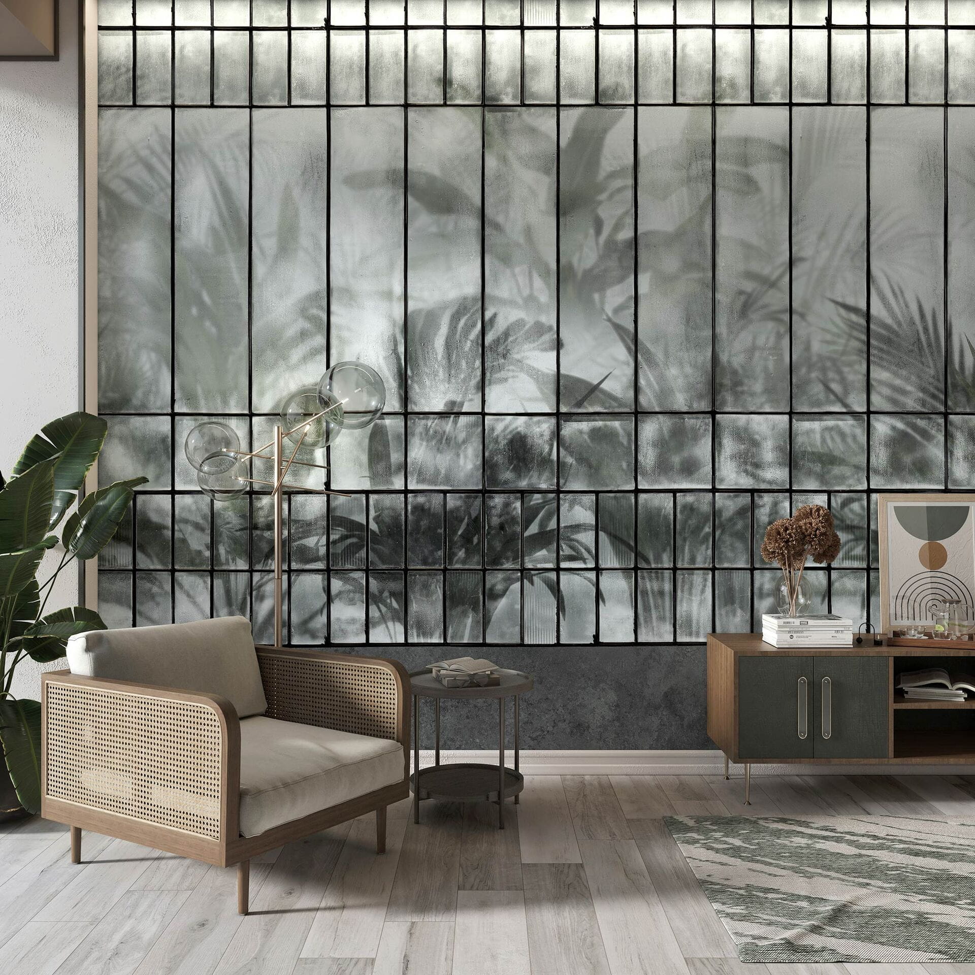 Tecnografica Decoratives Serra Grey - mural z motywem tropikalnego lasu za oknem