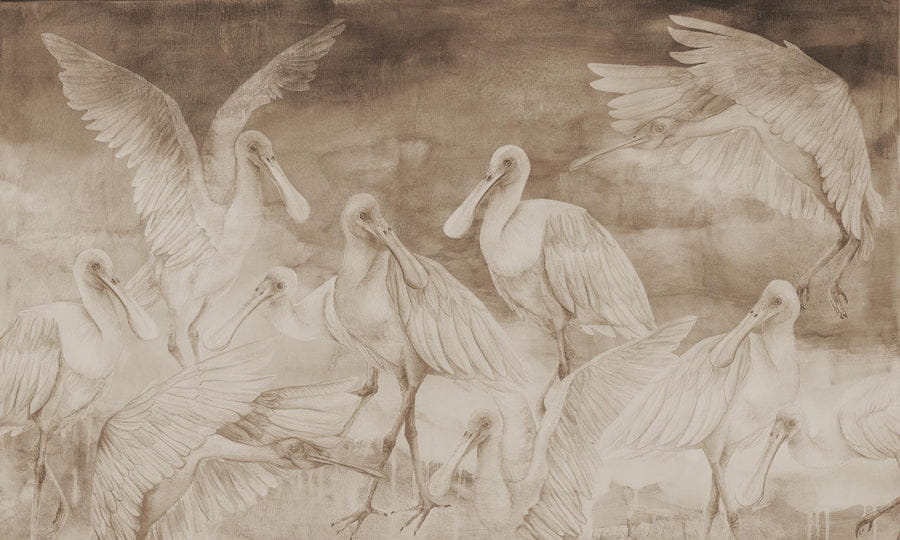 Mural Wall Art Annowa Ajaja Beige obrazuje urocze stado warzęch różowych, których łacińska nazwa to Platalea ajaja. Każda warzęcha została narysowana ręcznie z wyjątkową dbałością o szczegóły. Brązy, beże i odcienie złamanej bieli zastosowane we wzorze sprawiają, że jest on bardzo uniwersalny, stonowany i będzie stanowił nienachalną ozdobę większości ścian. Mural Wall Art Annowa Ajaja Beige został stworzony przez Annę Kowalczyk - wrocławską artystkę i założycielkę marki Pracownia Annowa - Z miłości do natury. Model dostępny jest w trzech wersjach kolorystycznych.