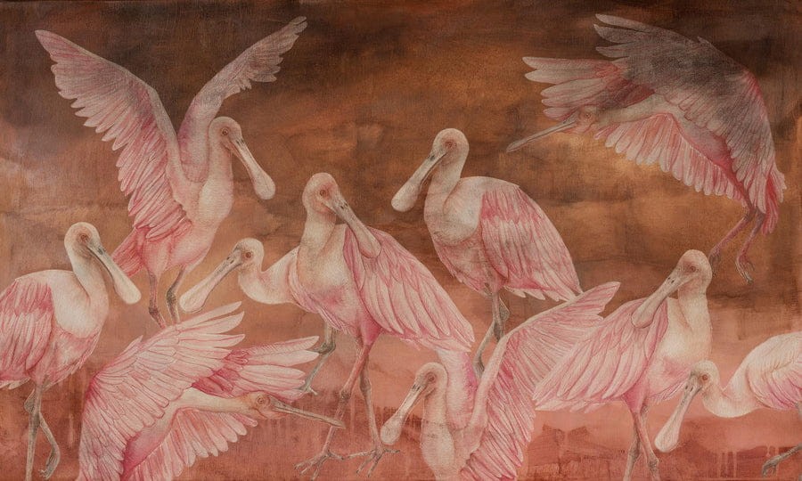 Mural Wall Art Annowa Tempesta Ajaja to połączenie intrygującego obrazu Tempesta z ręcznie malowanymi ptakami- warzęchami różowymi, których łacińska nazwa to Platalea ajaja. Każda warzęcha została narysowana ręcznie z wyjątkową dbałością o szczegóły. Zestawienie uroczych, różowych ptaków z nieco mrocznym tłem, daje wyjątkowo niebanalny efekt. Mural Wall Art Annowa Tempesta Ajaja został stworzony przez Annę Kowalczyk - wrocławską artystkę i założycielkę marki Pracownia Annowa - Z miłości do natury.