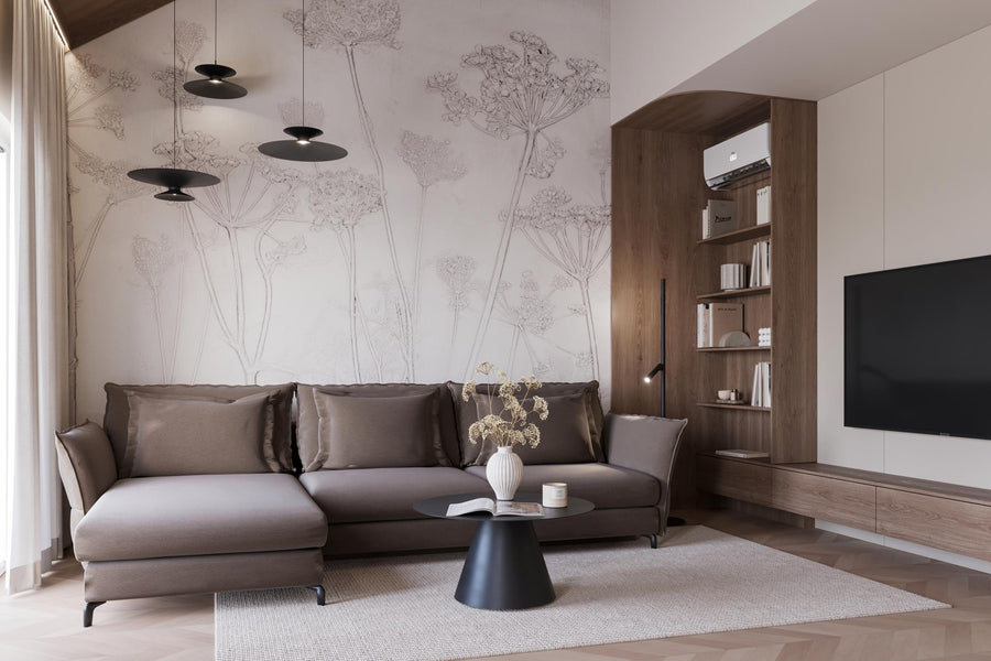 Mural Wall Art 2025/2026 Erbario Light zachwyca subtelną kompozycją inspirowaną suszonymi roślinami i tradycją zielników - delikatne łodygi i kwiatowe baldachy zdają się unosić nad matowym tłem, tworząc efekt płaskorzeźby o wyjątkowej lekkości. Rozbielony beż z nutą écru, kremowe akcenty i subtelne szarości nadają wzorowi świetlistości, która rozjaśnia i optycznie powiększa przestrzeń. Ten model doskonale odnajdzie się w aranżacjach japandi, nowoczesnych organicznych, skandynawskich czy boho, nadając im spokoju i elegancji. Mural Wall Art 2025/2026 Erbario Light można zamówić w 11 wariantach materiałowych, od wodoodpornego Aqua Zone po wyjątkowo wytrzymały Extreme, a dopasowanie do wymiarów ściany - również z wnękami, skosami i otworami - pozwala stworzyć perfekcyjną dekorację w salonie, sypialni, gabinecie czy przestrzeniach wellness.