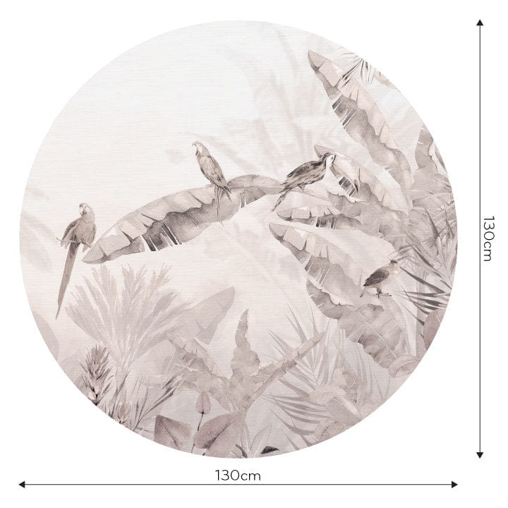 Wall Art Jungle Beige I - mural koło w słonia i ptaki