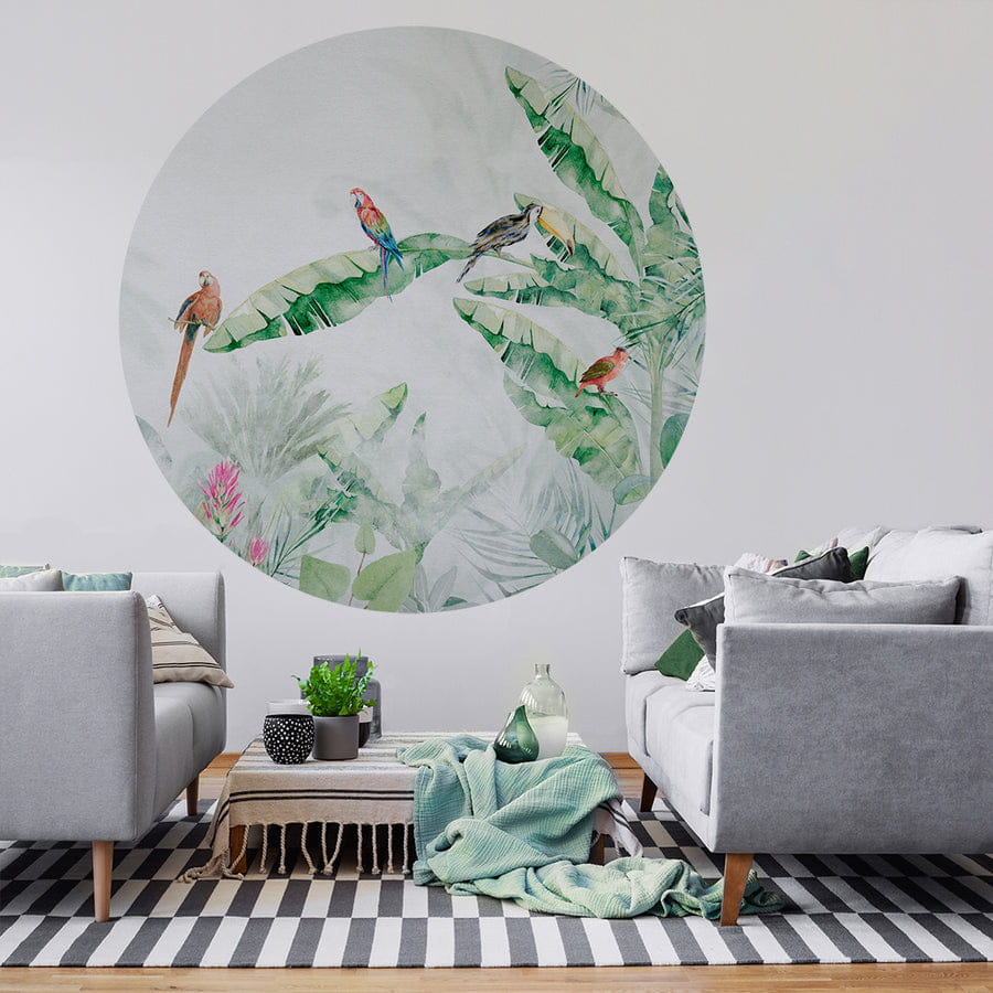 Mural Koło Wall Art Jungle Vivid II jest żywy i oryginalny. Idealnie sprawdzi się w przestrzeniach, które potrzebują wyrazistego dodatku, który wniesie w nie energię. Motywy zwierzęce i roślinne są niezwykle modne i pasują do różnie urządzonych przestrzeni. Model ten występuje w kilku wersjach, w których zmienia się układ flory i fauny lub paleta kolorystyczna. Otwiera to wiele możliwości aranżacyjnych. Beżowe warianty pasują do minimalistycznych i stonowanych przestrzeni, a te kolorowe do miejsc, w których żywe barwy grają pierwsze skrzypce. Wall Art Jungle Vivid II - mural koło w papugi i rośliny jest bardzo prosty w montażu. Wystarczy wybrać gładką powierzchnię - ścianę, fronty mebli, lustro - i przykleić go na samoprzylepną warstwę spodnią.