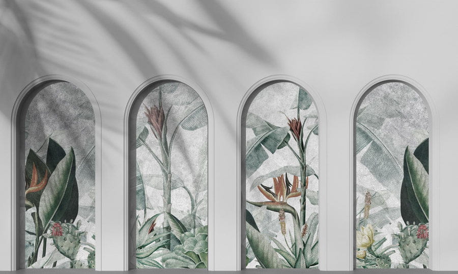 Wall Art Libra Light Grey Harmony Ash - mural w architektoniczny motyw i kwiaty