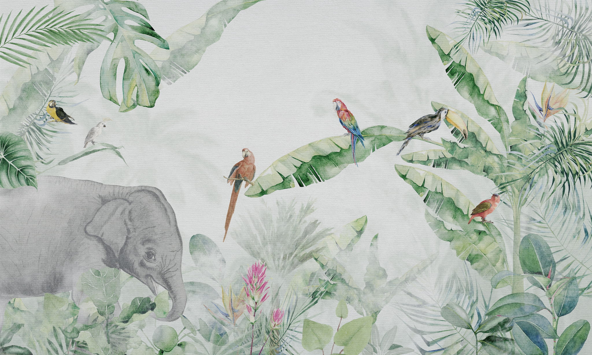 Mural Wall Art Originals Jungle Vivid to nowa odsłona projektu Jungle z kolekcji nature, nawiązująca do afrykańskiej natury i egzotycznych trendów. Palmy, klasztory, liście bananowca i piękne papugi namalowane przez XVIII-wiecznych malarzy będą oryginalną ozdobą wnętrz. Mural Wall Art Originals Jungle Vivid będzie ciekawą propozycją na ozdobienie ściany akcentowej salonu, sypialni czy jadalni. Doskonale odnajdzie się jako dodatek w klasycznych, nowoczesnych czy eklektycznych wnętrzach.