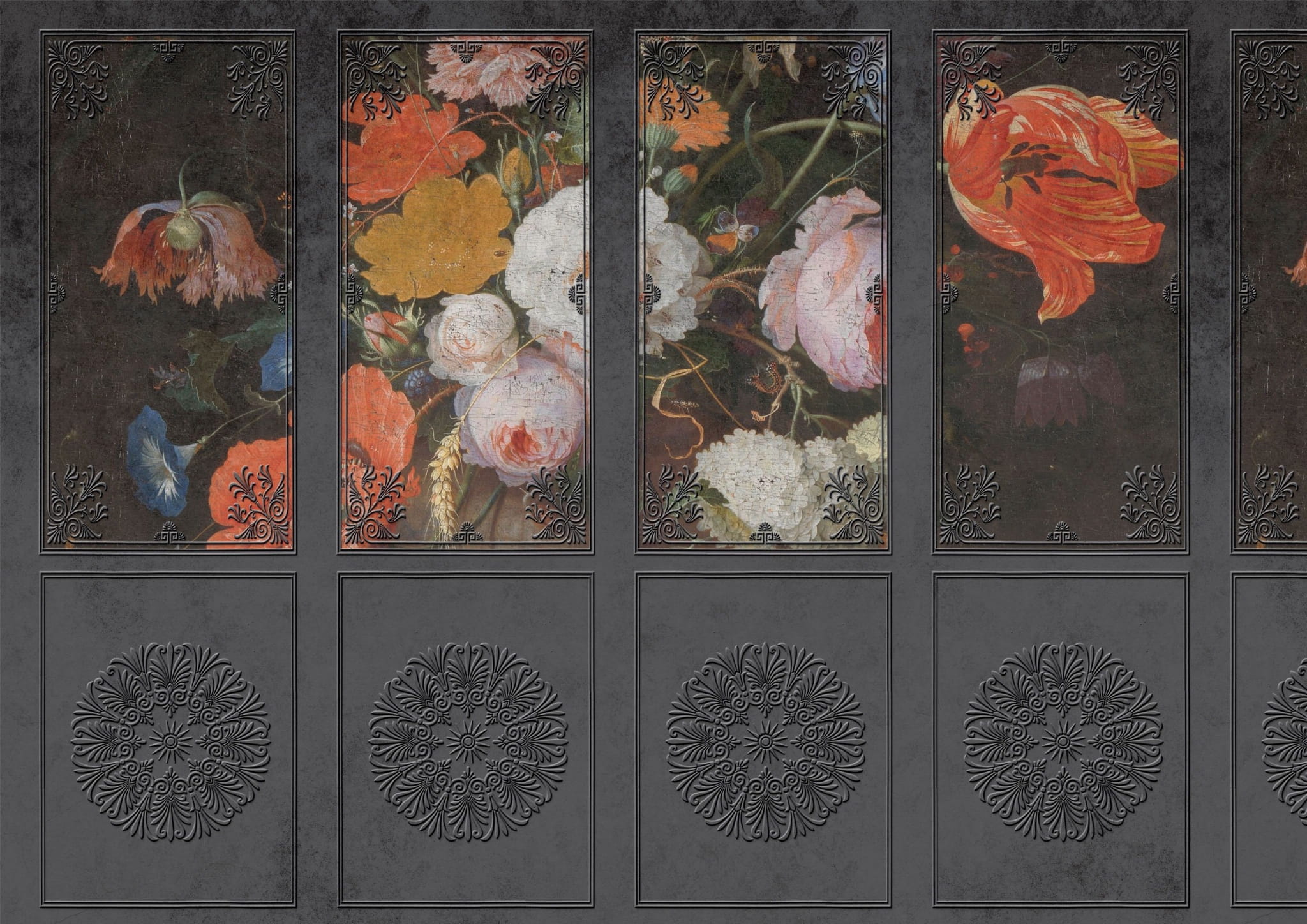 Mural Wall Art Originals Refined Noire został zainspirowany imponującą sztuką. Projekt przedstawia okazałe kwiaty na czarnym tle, które zostały ukryte za wymyślnymi drzwiami w stylu vintage. Projekt wprowadzi do pomieszczenia dużą dawkę natury i piękna. Wzór Refined Noire z kolekcji murali Wall Art Originals to doskonała propozycja na aranżację eklektycznych, klasycznych, vintage czy nowoczesnych wnętrz. Będzie ciekawym tłem dla lustra w łazience, łóżka sypialni czy telewizora w salonie, zdobiąc główną ścianę pomieszczenia.