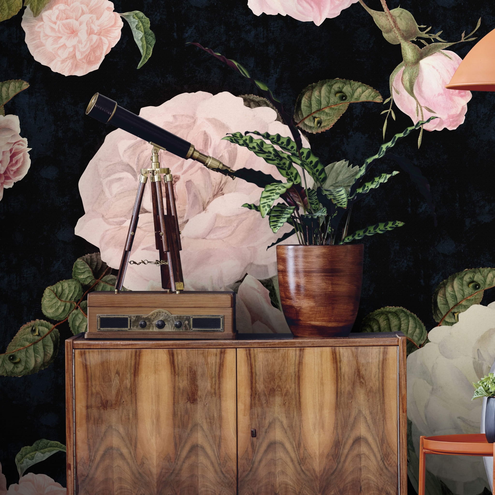 Mural Wall Art Originals Roses dark blue czerpie swoją inspirację z niesamowitej przyrody. Projekt przedstawia subtelne róże na czarnym tle, które zaczarują każde pomieszczenie swoim wdziękiem i klasą. Wzór Roses dark blue z kolekcji murali Wall Art Originals idealnie sprawdzi się jako wykończenie klasycznych, nowoczesnych i eklektycznych wnętrz. Będzie ciekawą dekoracją zdobiąc akcentową ścianie salonu, przedpokoju, łazienki czy sypialni.