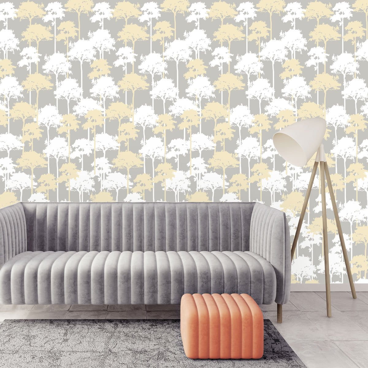 Wall Art Originals Rustle of the forest miodowy i szare tło - mural drzewa