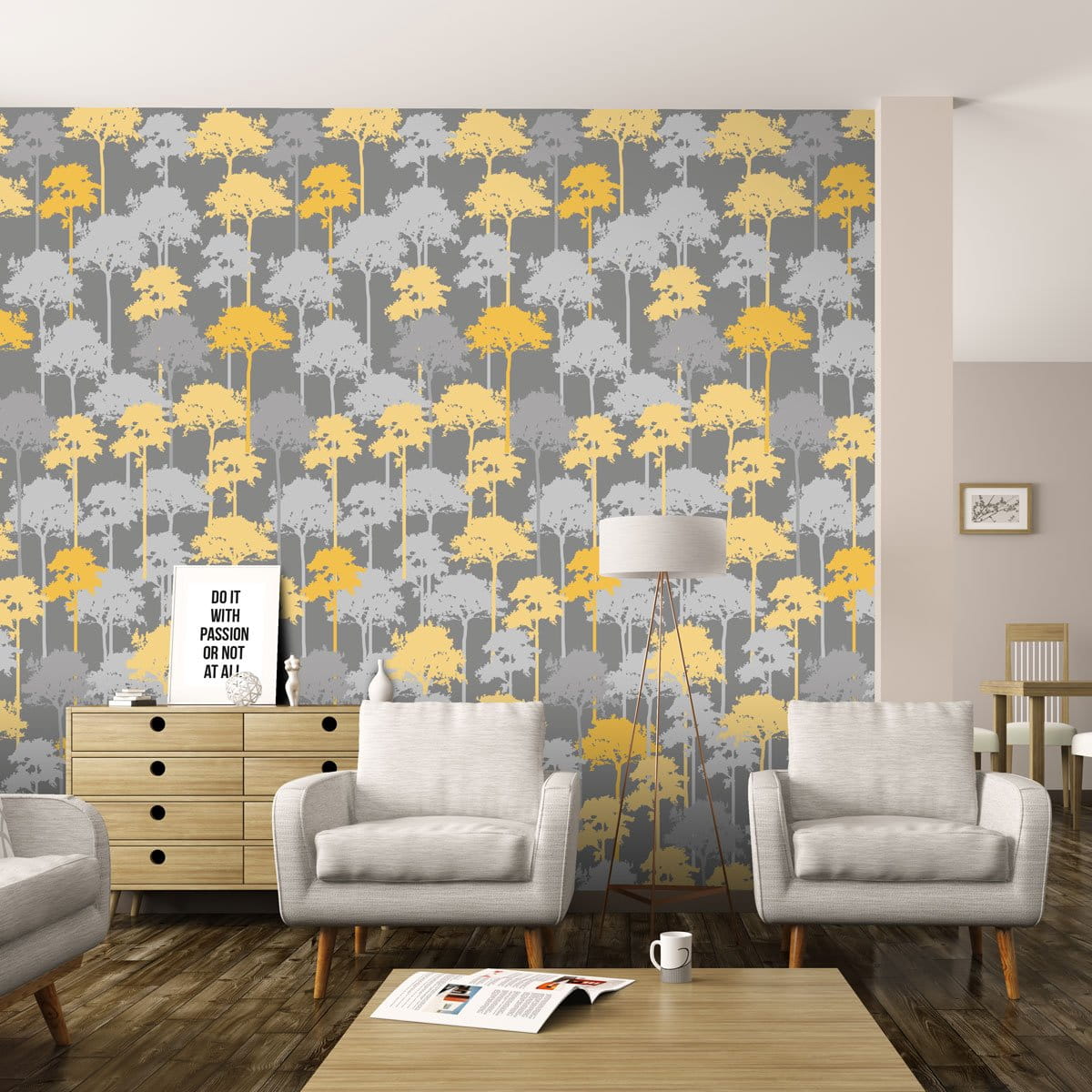Mural Wall Art Originals Rustle of the forest miodowy i szare tło została zainspirowana niesamowitą przyrodą. Projekt przedstawia miniaturowe miodowo-szare drzewa na ciemnym tle, które wprowadzą do pomieszczenia spokój i tajemnice z domieszką romantyzmu. Wzór Rustle of the forest miodowy i szare tło z kolekcji murali Wall Art Originals doskonale wpasuje się w minimalistyczne, industrialne, a także nowoczesne wnętrza. Z powodzeniem ozdobi akcentową ścianę salonu, sypialni, korytarza, łazienki czy jadalni.