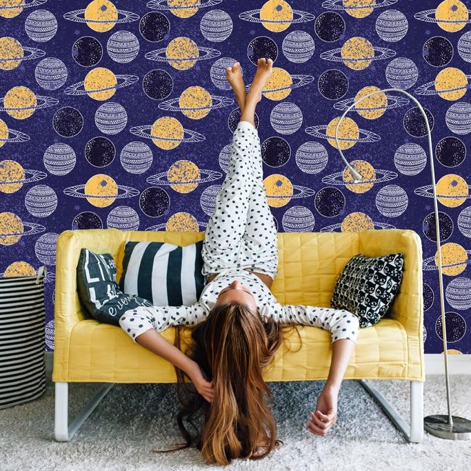Mural Wall Art Originals Space View została zainspirowana imponującym kosmosem. Projekt przedstawia różne planety na granatowym tle, które wprowadzą do pomieszczenia dużą dawkę nowości, muśniętej magią i tajemnicą. Wzór Space View z kolekcji murali Wall Art Originals to doskonała propozycja na aranżację eklektycznych, klasycznych, art-deco czy nowoczesnych wnętrz. Będzie ciekawym tłem dla lustra w łazience, łóżka sypialni czy telewizora w salonie, zdobiąc główną ścianę pomieszczenia.