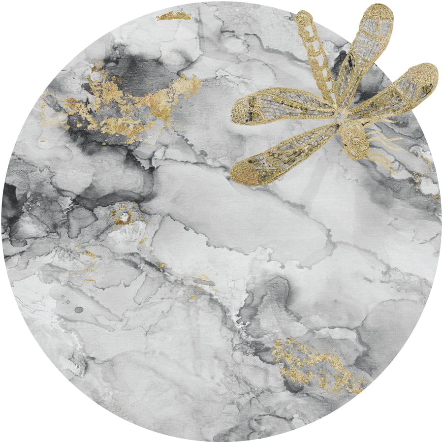 Mural Koło Wall Art Portafortuna B&W czerpie z piękna szlachetnego marmuru. Złota ważka, która wychodzi poza obręcz koła, dodaje projektowi unikalności. Połączenie zimnych barw i surowości marmuru ze złota ważką sprawia, że dzieło jest niebanalne i ma designerski charakter. Stworzono je ręcznie w formie obrazu, który dzięki zaawansowanej technologii może zdobić ściany. Wall Art Portafortuna B&W - mural koło w marmur i ważkę pasuje do wnętrz nowoczesnych i glamour. Dzięki uniwersalności barw zgra się z wieloma meblami i dodatkami. Mural jest również bardzo praktyczny. Jego montaż nie wymaga stosowania kleju - wystarczy przykleić go do dowolnej gładkiej powierzchni na samoprzylepną warstwę spodnią.
