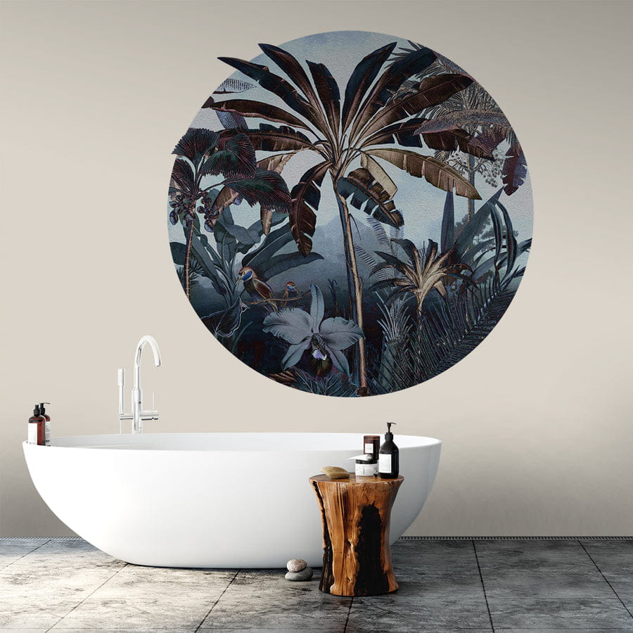 Mural Koło Wall Art Robinson wykorzystuje bardzo popularny i modny od lat roślinny motyw. Nawiązania do natury w aranżacjach są bardzo pożądane, ponieważ tworzą atmosferę harmonii, spokoju i bliskości z przyrodą. Duże liści palmy i krzewy sprawiają wrażenie, jakby wyrastały prosto ze ściany. Efekt ten został podbity przez fakt, że rośliny wychodzą poza obręcz koła. Utrzymano je w kolorystyce, która nie odpowiada realiom. Ten zabieg świetnie balansuje obraz, sprawia, że nie jest przytłaczający, mimo mnogości flory. Wall Art Robinson - mural koło w palmy poza walorami estetycznymi ma również praktyczny wymiar. Jego instalacja nie wymaga użycia kleju, wystarczy przykleić go na samoprzylepny spód. W dodatku można ulokować go nie tylko na ścianie, ale również na wszystkich innych gładkich powierzchniach.