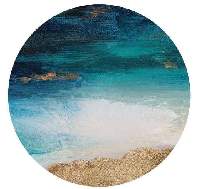 Mural Koło Wall Art Santorini przedstawia grecką plażę na tytułowej wyspie - Santorini. Słynie ona z pięknych, białych zabudowań oraz legendy, która głosi, że wyspa ta jest częścią zatopionej mitycznej Atlantydy. Autorka obrazu, Magdaleny Lenartowicz, przedstawiła plażę w sposób niedosłowny, lekko abstrakcyjny. Paleta kolorystyczna pełna głębokich błękitów, złota i bieli wprowadzi do wnętrz energię, elegancję, ale i wakacyjny, marzycielski klimat. Świetnie połączy się z nowoczesnymi i eklektycznymi przestrzeniami. Sprawdzi się w sypialni, salonie, ale i w różnych lokalach usługowych. Wall Art Santorini - mural koło w morski krajobraz jest bardzo prosty w montażu. Wystarczy wybrać gładką powierzchnię - ścianę, fronty mebli, lustro - i przykleić go na samoprzylepną warstwę spodnią.