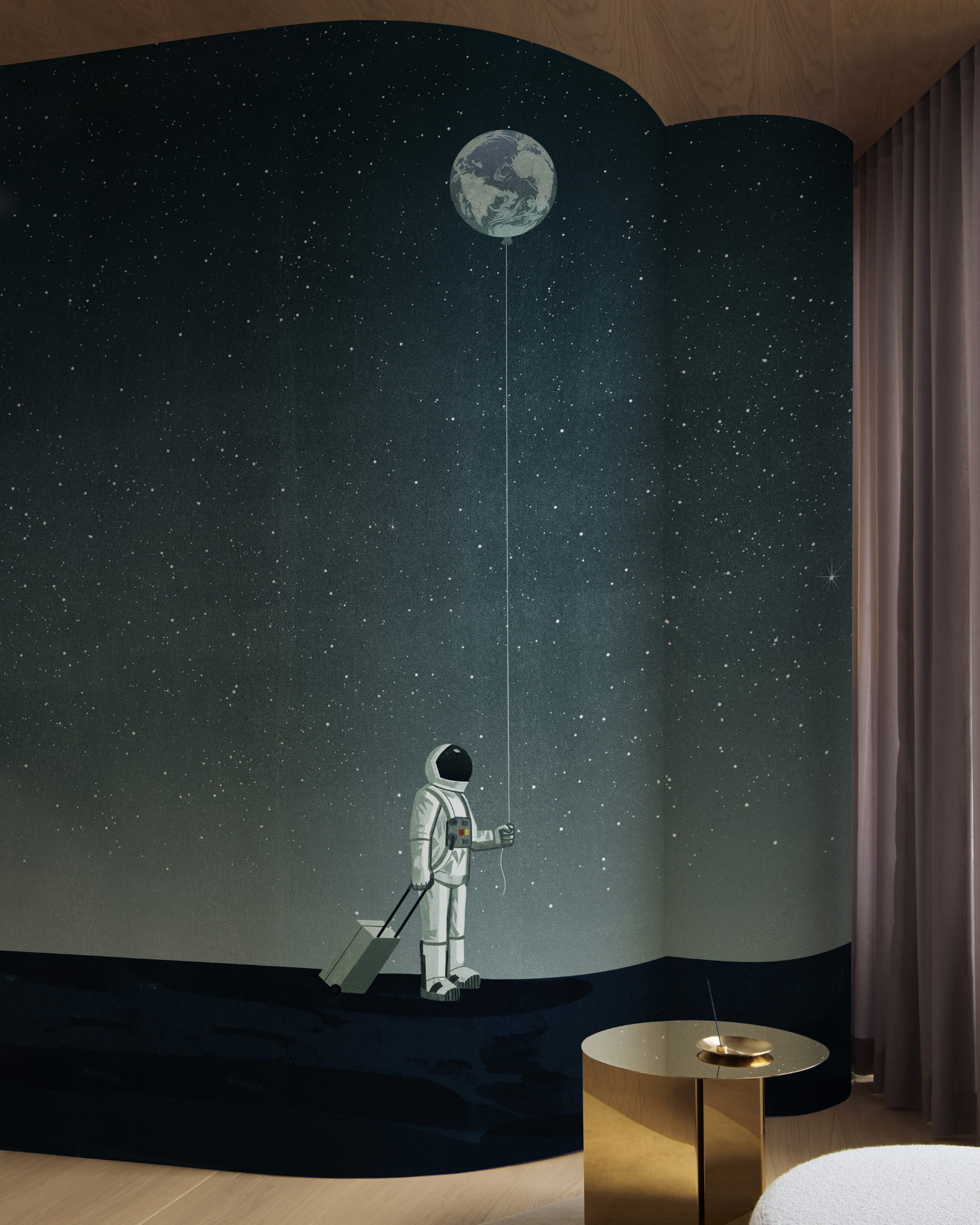 Mural Wall & Deco Contemporary 2024 Walking with the Moon WDWM2401 jest prawdziwą podróżą wprost w objęcia kosmosu, który staje się tłem dla surrealistycznego pejzażu. Na powierzchni księżyca przechadza się kosmonauta, trzymając w jednym ręku tajemniczą walizkę, a w drugiej niewielki balon, którego wzór przypomina Ziemię. W tle tej sceny mienią się tysiące gwiazd, dodając głębi i tajemnicy kosmicznemu pejzażowi. Mural Wall&Deco Contemporary 2024 WDWM2401 Walking with the Moon występuje w dwóch wersjach kolorystycznych, które wspaniale odnajdą się na ścianie akcentującej pokoju dziecka, salonu, sypialni, czy przestrzeni użytkowej.