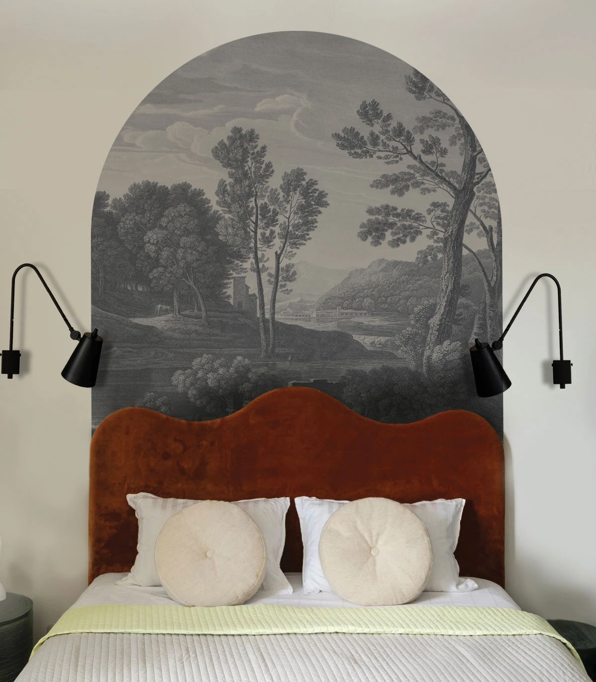 Mural Łuk Wallcolors Arch Ancient Riverside Grove ARCH-9106 wprowadzi do wnętrza relaksujący klimat. Przedstawia roślinny krajobraz, na którym widoczna jest rzeka, która dodaje kompozycji głębi. Motyw ten nawiązuje swoją estetyką do starych rycin. Dzięki delikatnym detalom i harmonijnej palecie kolorystycznej mural doda przestrzeni elegancji i wyjątkowego uroku. Designerski kształt łuku sprawia, że świetnie wpisuje się w różnorodne style wnętrzarskie, od nowoczesnych, po klasyczne. Doskonale sprawdzi się w sypialni, salonie, gabinecie czy jadalni. Jednym z największych atutów muralu jest możliwość jego personalizacji - klienci mogą wybrać zarówno rozmiar, jak i materiał, z jakiego zostanie wykonany. Dostępne podłoża różnią się teksturą, gramaturą i właściwościami. Mural Łuk Wallcolors Arch Ancient Riverside Grove ARCH-9106 to doskonały wybór dla osób, które chcą wprowadzić do swoich wnętrz roślinny krajobraz, który łączy oryginalny design z funkcjonalnością.