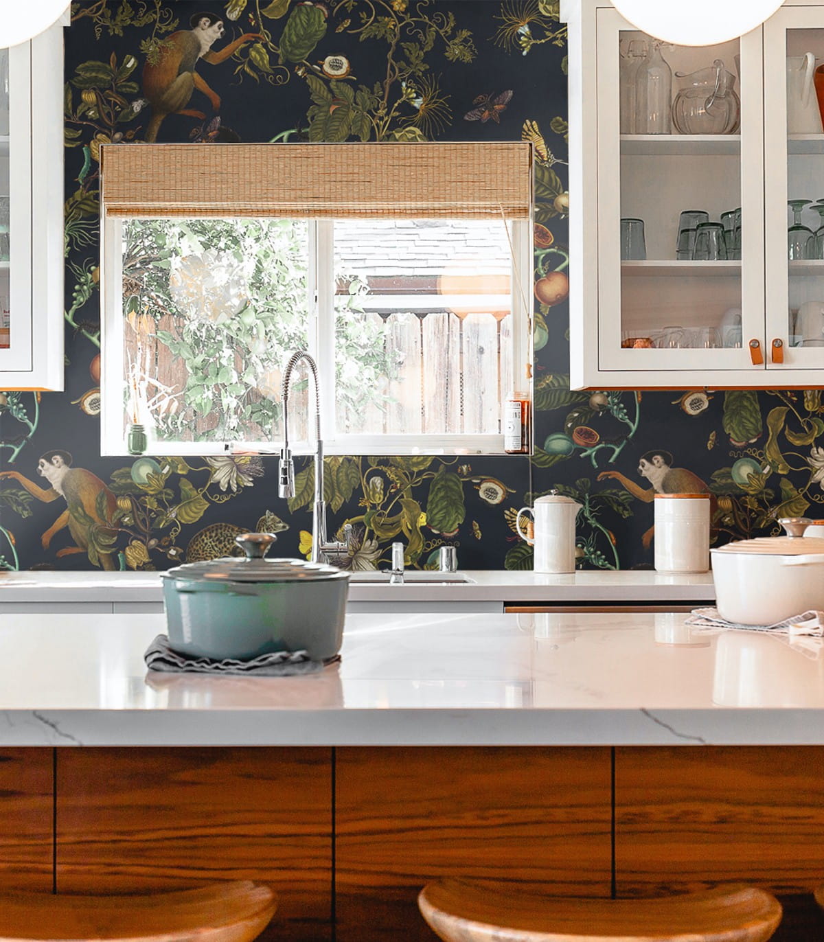 Mural Wallcolors Bestseller Magic Forest przedstawia cudowny projekt artystki Olgi Mulicy. Na wzorze możemy zobaczyć dzikiego geparda i małpę pośród owoców i barwnej dżungli, na czarnym tle. Ponadto motyw może zostać wydrukowany na wielu materiałach i teksturach, na przykład samoprzylepny materiał wallsticker, sprawia, że możesz w szybki sposób zmieniać miejsce zamontowania ozdoby, natomiast tekstura Smooth na flizelinie nadaje tapecie efekt jedwabistej gładkości. Z kolei tekstura Sand na flizelinie ma strukturę grubego piasku z efektem delikatnego błyszczenia, a faktura Canvas imituje grube płótno malarskie. Do wyboru mamy jeszcze materiał Concrete przypominający strukturę betonu oraz fakturę Raindrop imitującą spływające pionowo, błyszczące krople deszczu. Mural Wallcolors Bestseller Magic Forest to dekoracja, która z powodzeniem ozdobi akcentowe ściany salonów, sypialni, pokoi czy jadalni we wnętrzach w stylu nowoczesnym, art-deco, klasycznym, współczesnym, a nawet vintage. Zielone kwiaty i jasne, miękkie tekstylia podkreślą cudowne aranżacje. Model dostępny jest w trzech rozmiarach do wyboru: 100x200, 100x250 oraz 100x300.