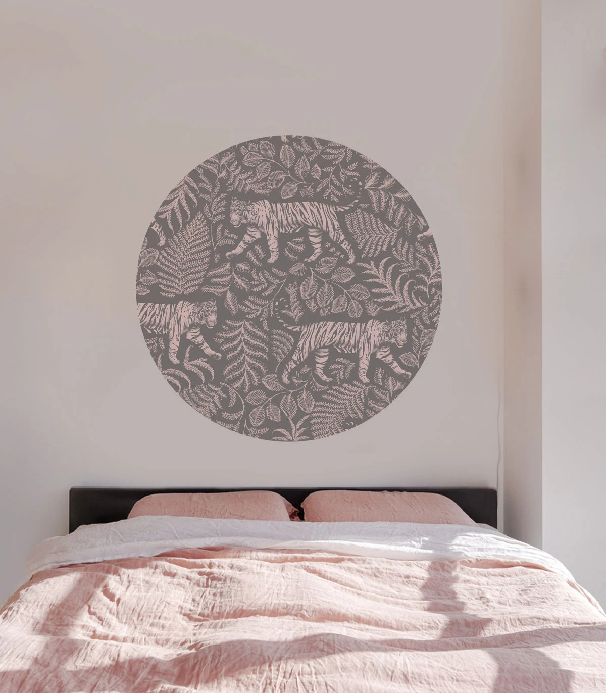 Mural Wallcolors Dots Camouflaged Tiger Gray Pink DOT-9126 to dekoracja ścienna, która emanuje naturalnym urokiem i wyrafinowaniem. Prezentuje stonowaną kompozycję pełną egzotycznych liści i przechadzających się tygrysów. Dzięki designerskiej formie koła mural doskonale wkomponuje się w różnorodne przestrzenie - zarówno te większe, jak i mniejsze. Idealnie sprawdzi się jako główny element dekoracyjny w sypialni, salonie, gabinecie czy butiku. W ofercie dostępne są trzy rozmiary produktu. Wykonano go z samoprzylepnego materiału Wallstick, który zapewnia łatwy montaż oraz bezproblemowy demontaż. Dzięki temu mural Wallcolors Dots Camouflaged Tiger Gray Pink DOT-9126 jest świetnym rozwiązaniem dla każdej przestrzeni.