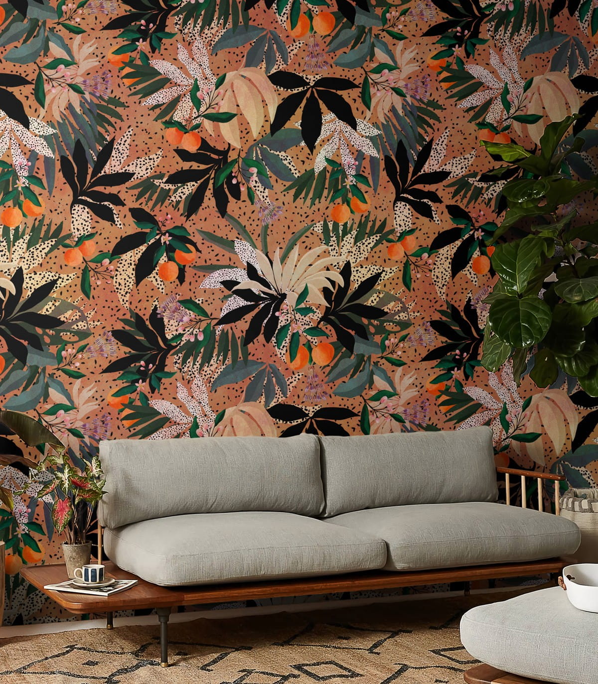 Mural Wallcolors Floral Majesty Apricots to okleina o niesamowicie naturalnym charakterze. Projekt ten przedstawia gałązki mandarynki ubrane w owoce i kwiaty oraz liście na nakrapianym, pomarańczowym tle. Motyw może zostać wydrukowany na wielu materiałach i teksturach, na przykład samoprzylepny materiał wallsticker, sprawia, że możesz w szybki sposób zmieniać miejsce zamontowania ozdoby, natomiast tekstura Smooth na flizelinie nadaje tapecie efekt jedwabistej gładkości. Z kolei tekstura Sand na flizelinie ma strukturę grubego piasku z efektem delikatnego błyszczenia, a faktura Canvas imituje grube płótno malarskie. Do wyboru mamy jeszcze materiał Concrete przypominający strukturę betonu oraz fakturę Raindrop imitującą spływające pionowo, błyszczące krople deszczu. Mural Wallcolors Floral Majesty Apricots sprawdzi się jako dekoracja do pokoi dziecięcych, salonów, sypialni a nawet jadalni. Drewniane podłogi, jasne meble i kolorowe, puszyste dodatki podkreślą wyjątkowy styl ozdoby ściennej. Model dostępny jest w trzech rozmiarach.
