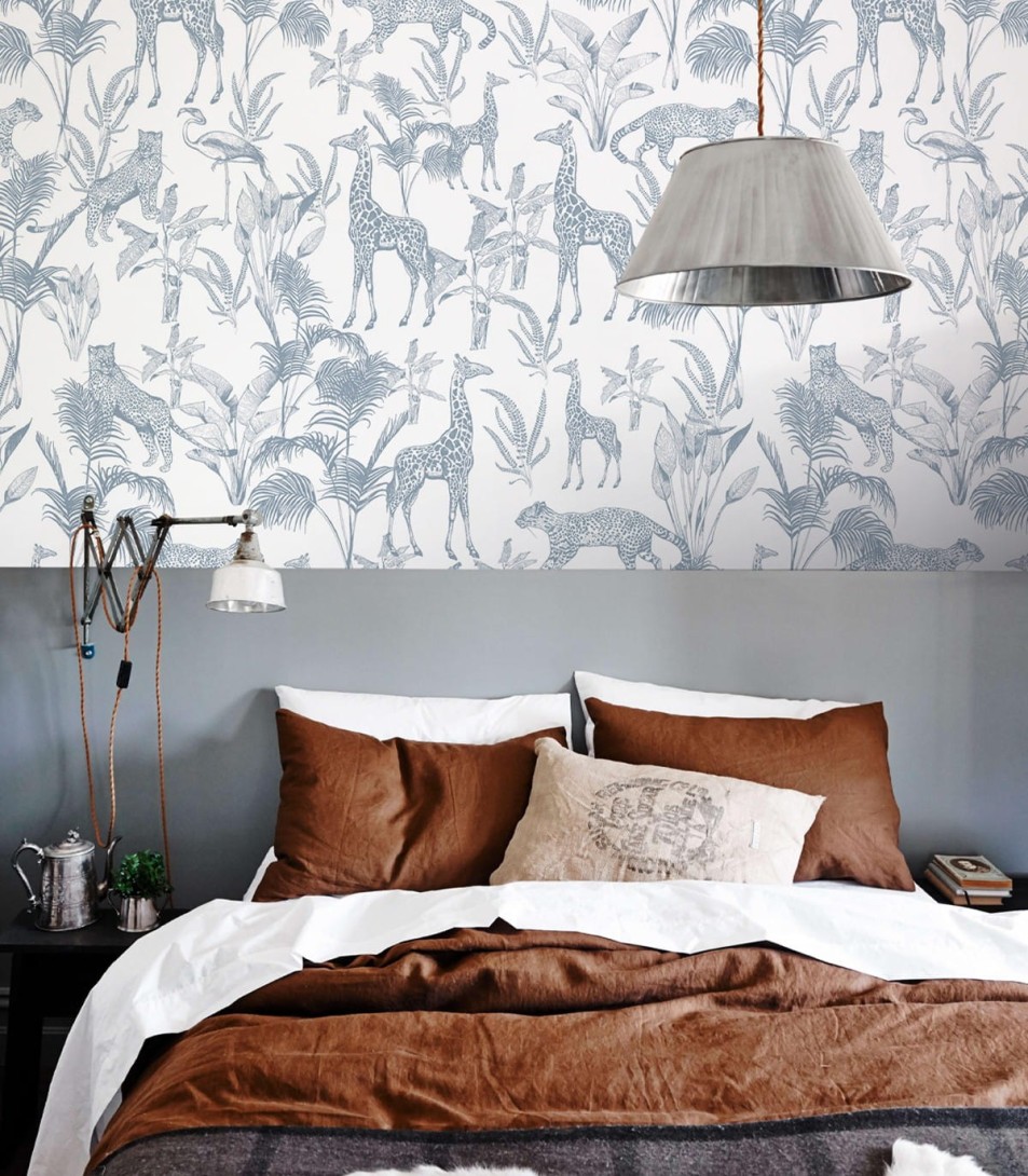Mural Wallcolors Life in Boho Safari Blue przedstawia cudowny projekt artystki Olgi Mulicy. Na wzorze widzimy szkice dzikich zwierzęta: żyraf i gepardów na białym tle. Ponadto motyw może zostać wydrukowany na wielu materiałach i teksturach, na przykład samoprzylepny materiał wallsticker, sprawia, że możesz w szybki sposób zmieniać miejsce zamontowania ozdoby, natomiast tekstura Smooth na flizelinie nadaje tapecie efekt jedwabistej gładkości. Z kolei tekstura Sand na flizelinie ma strukturę grubego piasku z efektem delikatnego błyszczenia, a faktura Canvas imituje grube płótno malarskie. Do wyboru mamy jeszcze materiał Concrete przypominający strukturę betonu oraz fakturę Raindrop imitującą spływające pionowo, błyszczące krople deszczu. Mural Wallcolors Life in Boho Safari Blue to doskonała ozdoba do wnętrz minimalistycznych, nowoczesnych lub art-deco. Prosta forma dekoracji sprawi, że można urozmaicić aranżację kolorowymi dodatkami. Model dostępny jest w trzech rozmiarach.