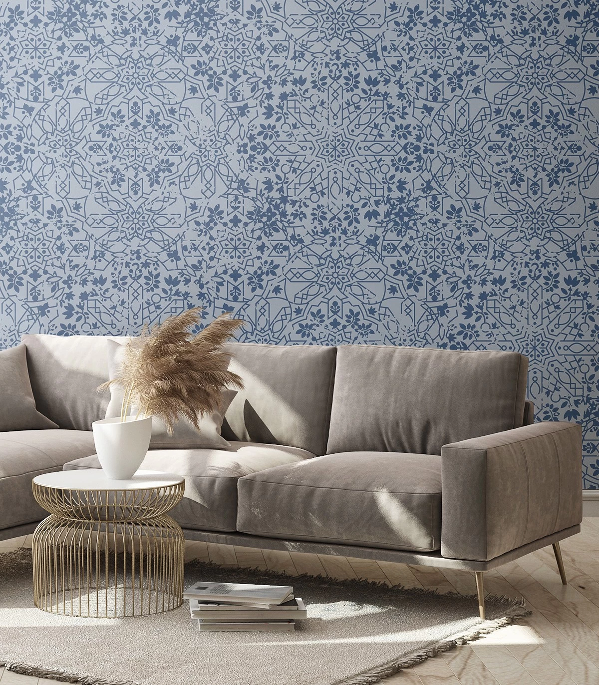 Mural Wallcolors Medicine Maroko Blue przedstawia cudowną dekorację zaprojektowaną przez Medicine. Na wzorze widzimy urokliwe, niebieskie zdobienia, które wyglądają jak ręcznie malowane na jasne kartce papieru. Ponadto motyw może zostać wydrukowany na wielu materiałach i teksturach, na przykład samoprzylepny materiał wallsticker, sprawia, że możesz w szybki sposób zmieniać miejsce zamontowania ozdoby, natomiast tekstura Smooth na flizelinie nadaje tapecie efekt jedwabistej gładkości. Z kolei tekstura Sand na flizelinie ma strukturę grubego piasku z efektem delikatnego błyszczenia, a faktura Canvas imituje grube płótno malarskie. Do wyboru mamy jeszcze materiał Concrete przypominający strukturę betonu oraz fakturę Raindrop imitującą spływające pionowo, błyszczące krople deszczu. Mural Wallcolors Medicine Maroko Blue to dekoracja, która z powodzeniem ozdobi akcentowe ściany salonów, sypialni, pokoi czy jadalni we wnętrzach w stylu nowoczesnym, art-deco, klasycznym, współczesnym, a nawet vintage. Zielone kwiaty i jasne, miękkie, puszyste tekstylia podkreślą cudowne aranżacje. Model dostępny jest w trzech rozmiarach do wyboru: 100x200, 100x250 lub 100x300.