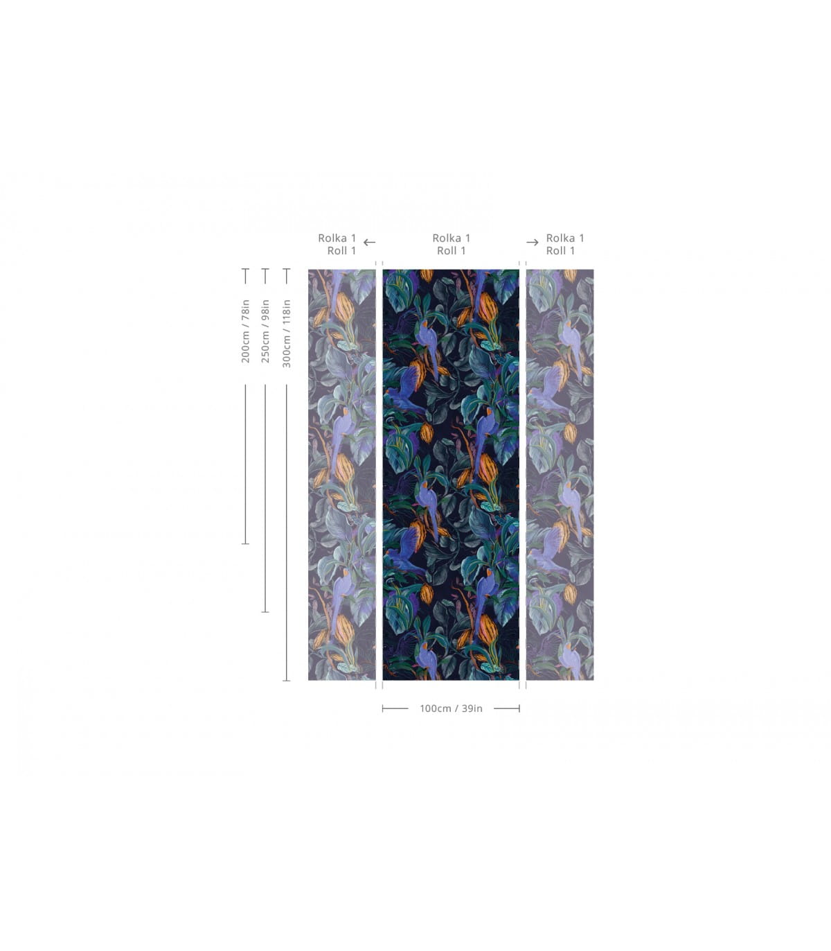 Mural Wallcolors Tropical Intense Blue Parrots przedstawia kolorową dekorację z niebieskimi papugami siedzącymi na gałęziach. Wzór ten wprowadzi do pomieszczenia dużo zabawy, piękna i nowoczesnego stylu. Projekt może zostać wydrukowany na wielu materiałach i teksturach, na przykład samoprzylepny materiał wallsticker, sprawia, że możesz w szybki sposób zmieniać miejsce zamontowania ozdoby, natomiast tekstura Smooth na flizelinie nadaje tapecie efekt jedwabistej gładkości. Z kolei tekstura Sand na flizelinie ma strukturę grubego piasku z efektem delikatnego błyszczenia, a faktura Canvas imituje grube płótno malarskie. Do wyboru mamy jeszcze materiał Concrete przypominający strukturę betonu oraz fakturę Raindrop imitującą spływające pionowo, błyszczące krople deszczu. Mural Wallcolors Tropical Intense Blue Parrots to nowoczesna ozdoba do klasycznego przedpokoju, nowoczesnej sypialni czy art-deco salonu. Jej cudowne kolory sprawią, że dekoracja z powodzeniem zastąpi obraz. Model dostępny jest w trzech rozmiarach.