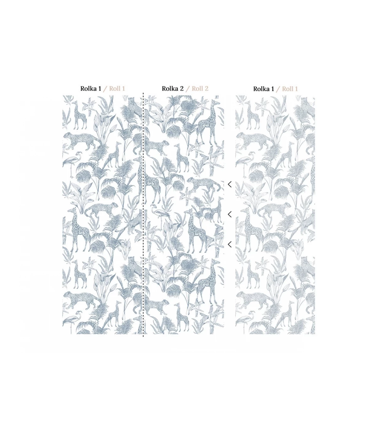 Mural Wallcolors Tropical Intense Safari Blue przedstawia cudowny projekt artystki Olgi Mulicy. Na wzorze widzimy szkice dzikich zwierzęta: żyraf i gepardów na białym tle. Ponadto motyw może zostać wydrukowany na wielu materiałach i teksturach, na przykład samoprzylepny materiał wallsticker, sprawia, że możesz w szybki sposób zmieniać miejsce zamontowania ozdoby, natomiast tekstura Smooth na flizelinie nadaje tapecie efekt jedwabistej gładkości. Z kolei tekstura Sand na flizelinie ma strukturę grubego piasku z efektem delikatnego błyszczenia, a faktura Canvas imituje grube płótno malarskie. Do wyboru mamy jeszcze materiał Concrete przypominający strukturę betonu oraz fakturę Raindrop imitującą spływające pionowo, błyszczące krople deszczu. Mural Wallcolors Tropical Intense Safari Blue to doskonała ozdoba do wnętrz minimalistycznych, nowoczesnych lub art-deco. Prosta forma dekoracji sprawi, że można urozmaicić aranżację kolorowymi dodatkami. Model dostępny jest w trzech rozmiarach do wyboru: 100x200, 100x250 lub 100x300.
