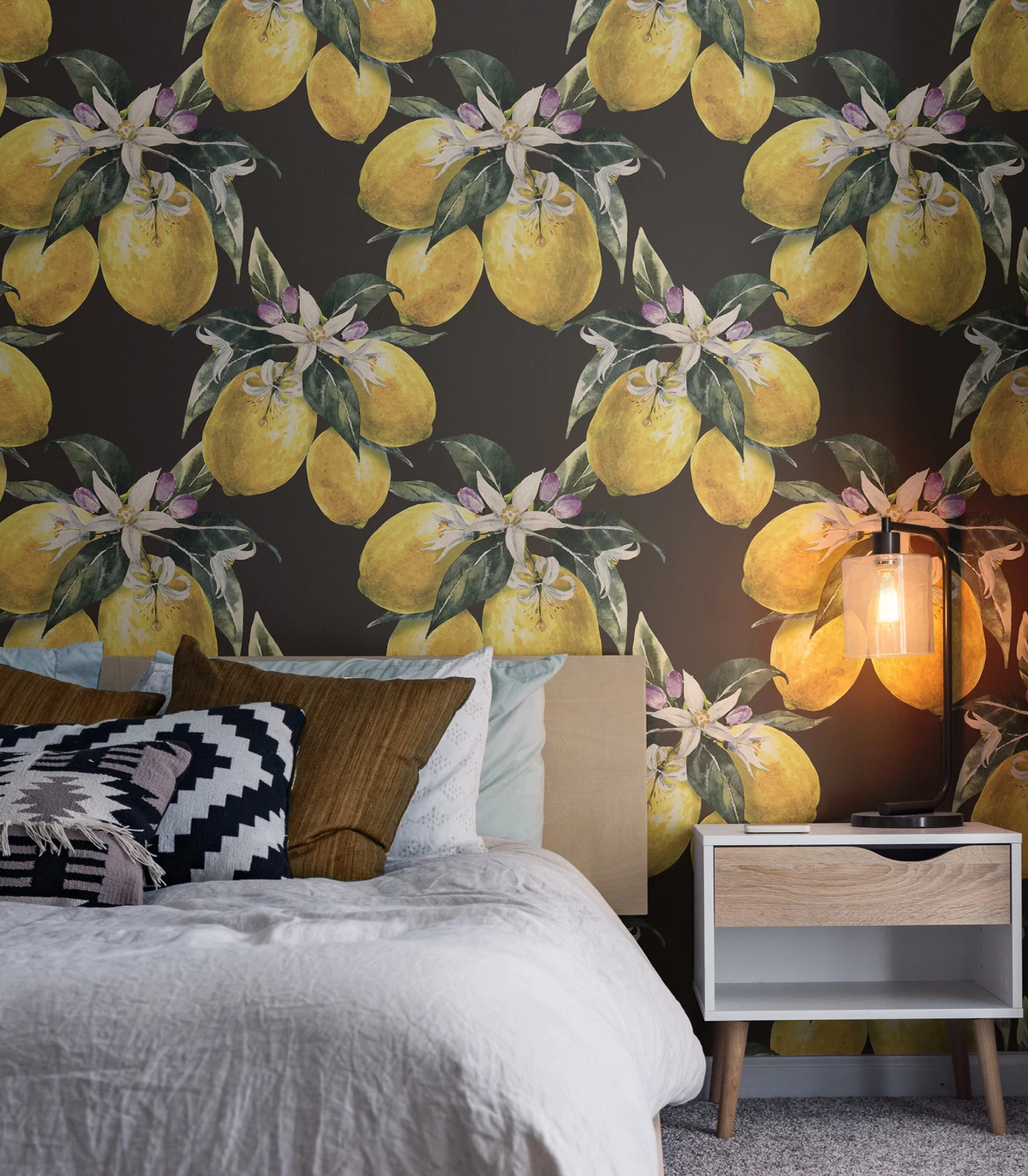 Mural Wallcolors Tropical Intense Watercolor Citrus to przepiękna i soczysta ozdoba zaprojektowana z myślą o naturze. Motyw przedstawia orzeźwiające, żółciutkie cytryny na czarnym tle, rosnące na ścianie Twojego pokoju. Motyw może zostać wydrukowany na wielu materiałach i teksturach, na przykład samoprzylepny materiał wallsticker, sprawia, że możesz w szybki sposób zmieniać miejsce zamontowania ozdoby, natomiast tekstura Smooth na flizelinie nadaje tapecie efekt jedwabistej gładkości. Z kolei tekstura Sand na flizelinie ma strukturę grubego piasku z efektem delikatnego błyszczenia, a faktura Canvas imituje grube płótno malarskie. Do wyboru mamy jeszcze materiał Concrete przypominający strukturę betonu oraz fakturę Raindrop imitującą spływające pionowo, błyszczące krople deszczu. Mural Wallcolors Tropical Intense Watercolor Citrus idealnie sprawdzi się jako wykończenie klasycznych, nowoczesnych i eklektycznych wnętrz. Będzie ciekawą dekoracją zdobiąc akcentową ścianie salonu, przedpokoju, łazienki czy sypialni. Model dostępny jest w trzech rozmiarach do wyboru: 100x200, 100x250 lub 100x300.