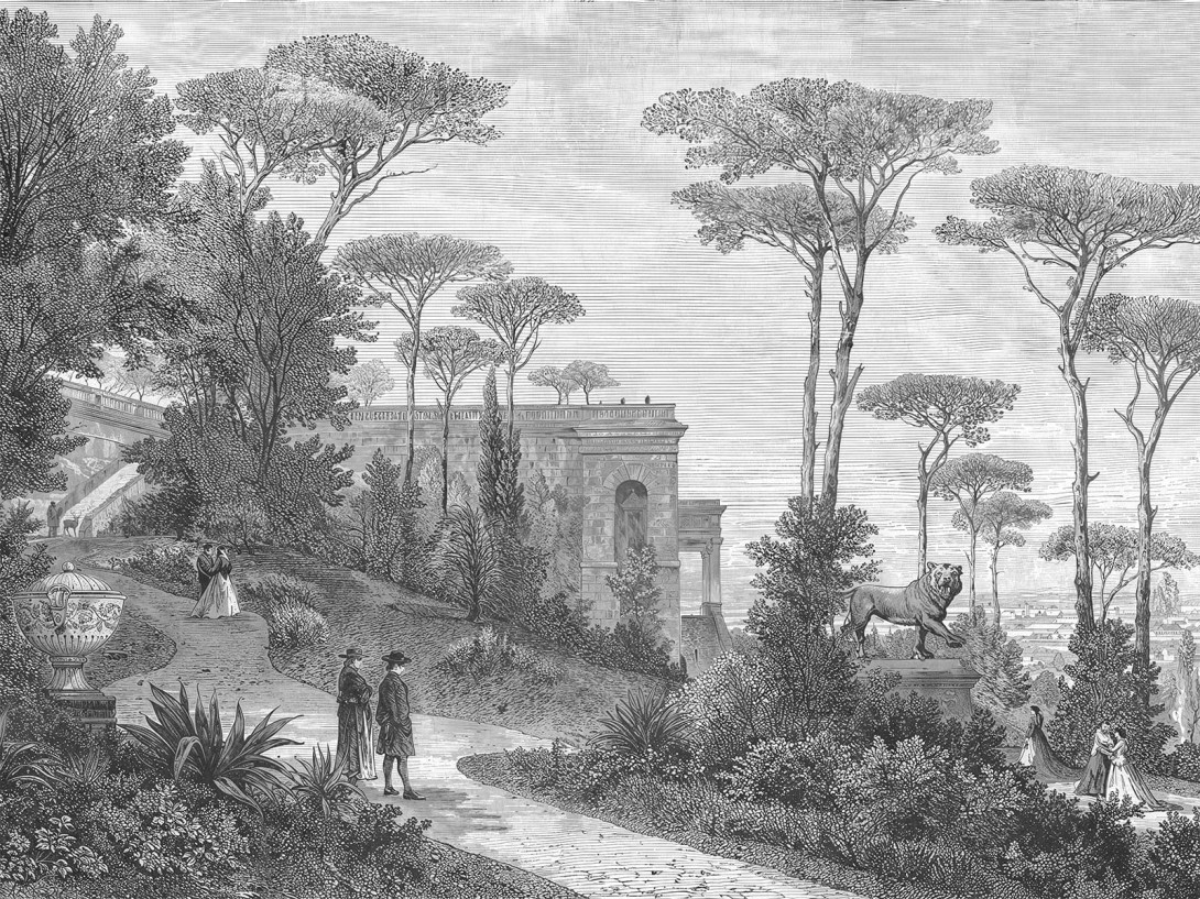 Mural Wallcraft 2025 Rosae 920 31 2402 przedstawia rozległy ogród o renesansowym charakterze, pełen misternie odwzorowanych drzew, roślin i architektonicznych detali. Równowaga kompozycji oraz linearny rysunek nadają wzorowi szlachetności i poczucia porządku, a jednocześnie tworzą iluzję głębi, która optycznie powiększa przestrzeń. Taki motyw idealnie pasuje do wnętrz w stylu klasycznym, modern classic czy art déco, gdzie historyczne inspiracje podkreślają prestiż aranżacji. Doskonale współgra z materiałami o wyrazistej strukturze, takimi jak kamień, fornir czy patynowany mosiądz. Do salonu wprowadza monumentalny akcent, w sypialni działa kojąco, a w jadalni tworzy atmosferę eleganckiego przyjęcia. Produkt można spersonalizować pod kątem ozdobnej faktury oraz zabezpieczenia powłoką ochronną. Mural Wallcraft 920 31 2402 2025 Rosae pasuje do przestrzeni, w których dekoracja ścienna staje się centralnym elementem wystroju, łącząc sztukę z luksusowym designem.