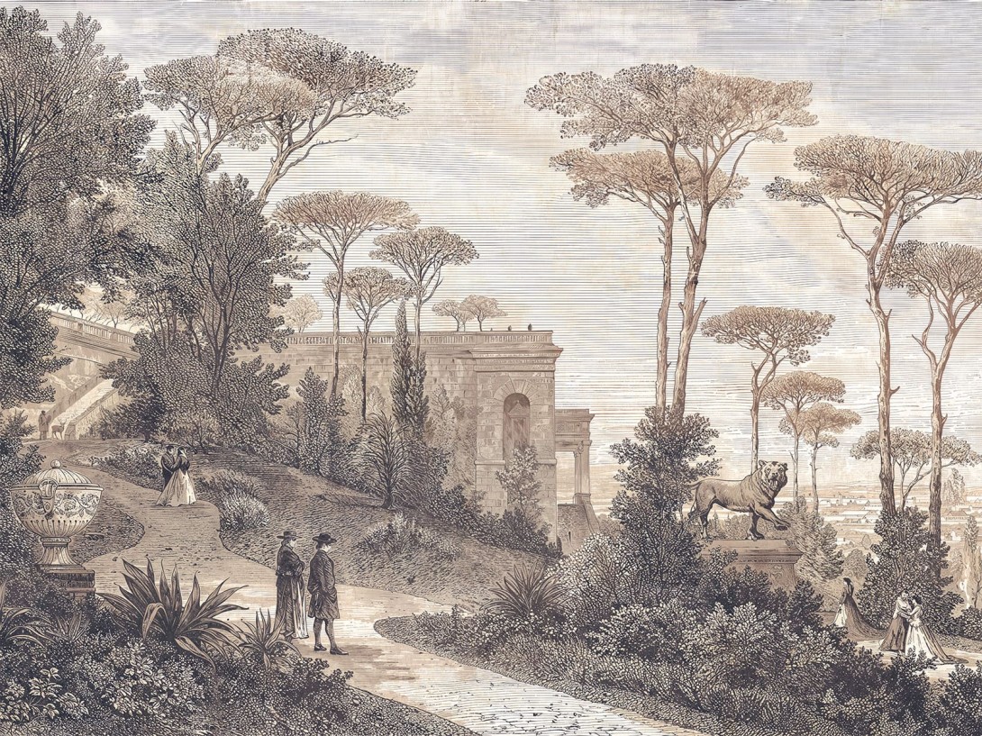 Mural Wallcraft 2025 Rosae 920 32 2402 przedstawia rozległy renesansowy ogród, w którym architektoniczne detale i bujna roślinność tworzą panoramiczny obraz o wyważonych proporcjach. Wyraźnie zaznaczona perspektywa optycznie powiększa przestrzeń, a rytm drzew i misternych ornamentów wprowadza poczucie ładu i elegancji. Wzór sprawdza się w reprezentacyjnych salonach, stylowych jadalniach oraz klasycznych gabinetach, nadając im szlachetnego charakteru. Możliwość personalizacji pod kątem ozdobnej faktury i powłoki ochronnej pozwala dopasować mural do specyfiki wnętrza. W towarzystwie naturalnego kamienia, forniru lub metalu w patynowanym wykończeniu zyskuje dodatkową głębię. Mural Wallcraft 920 32 2402 2025 Rosae harmonizuje z aranżacjami klasycznymi, modern classic i art déco, podkreślając ich prestiżowy wymiar.