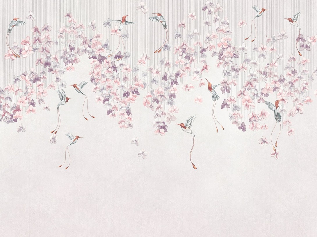 Wallcraft 975 33 2402 2024 Colibris - mural w roślinny wzór w stylu chinoiserie